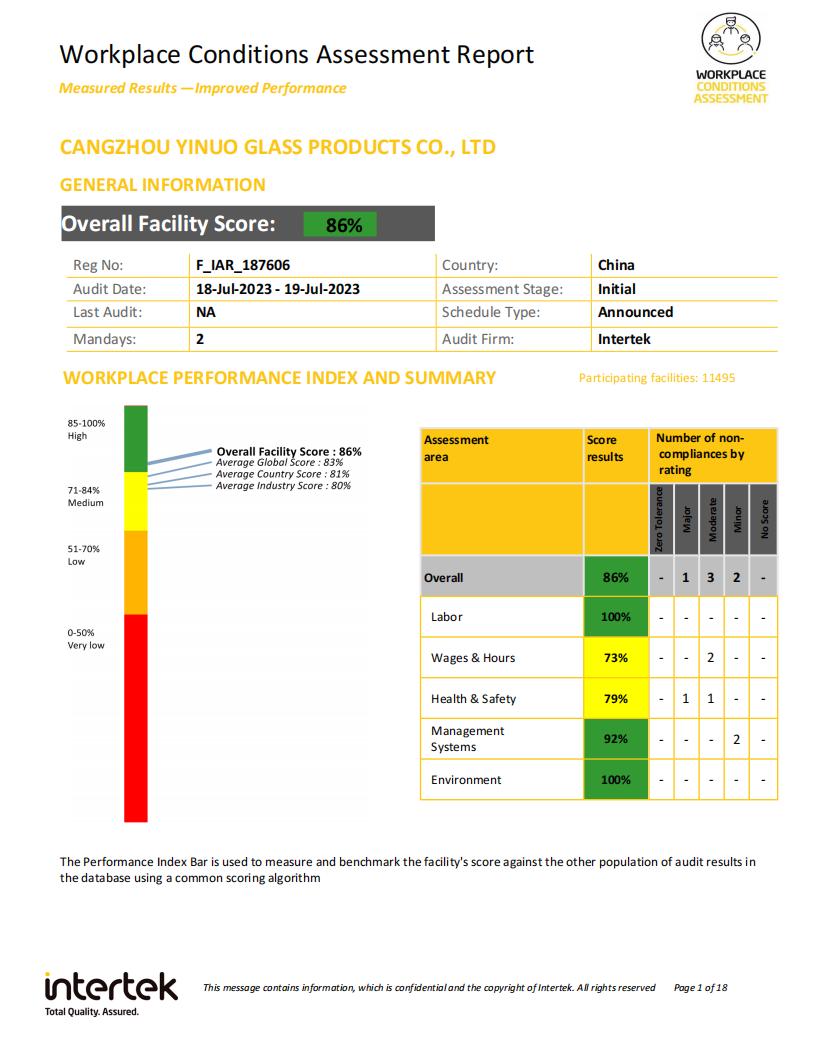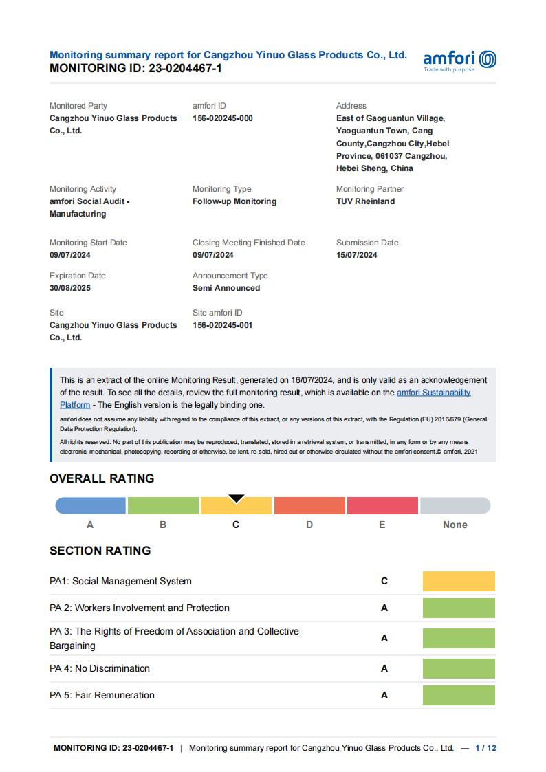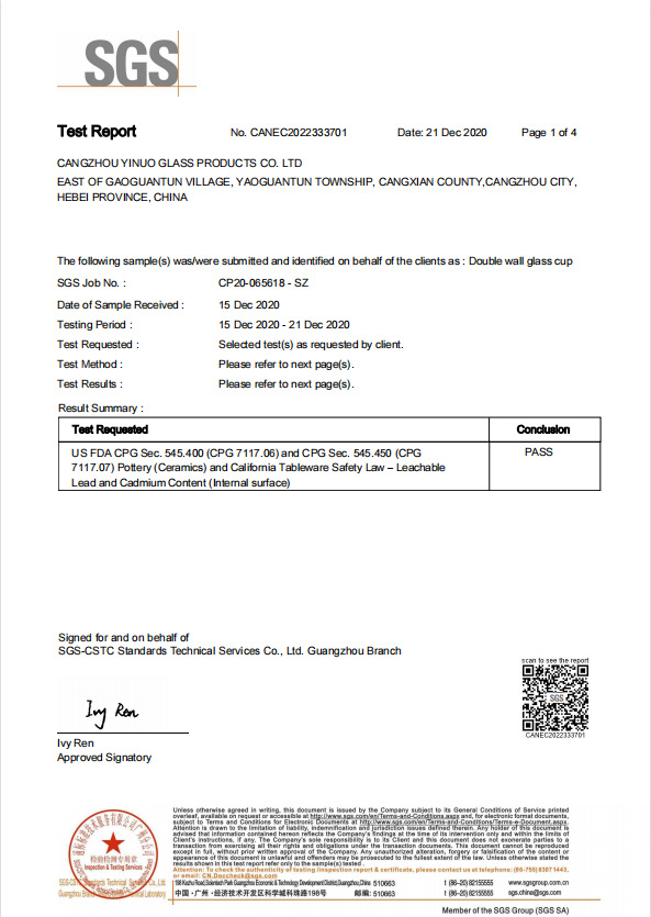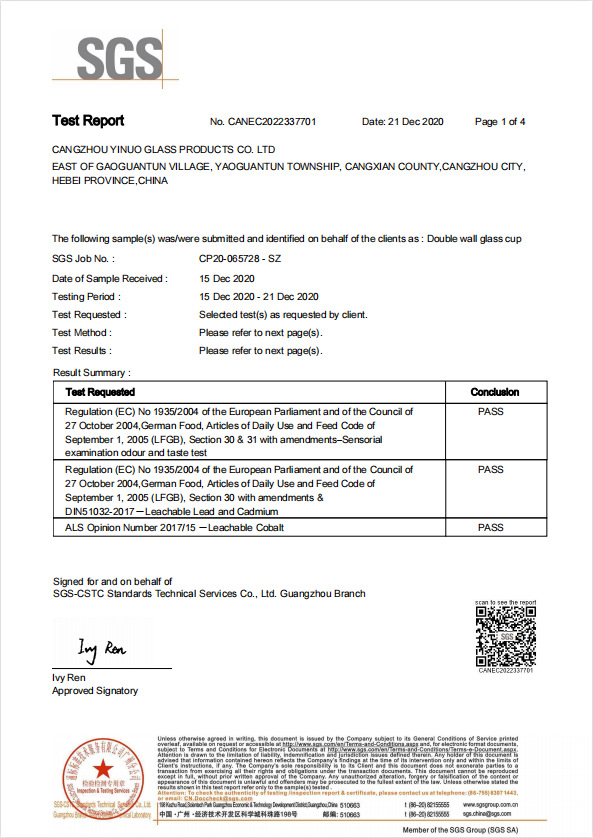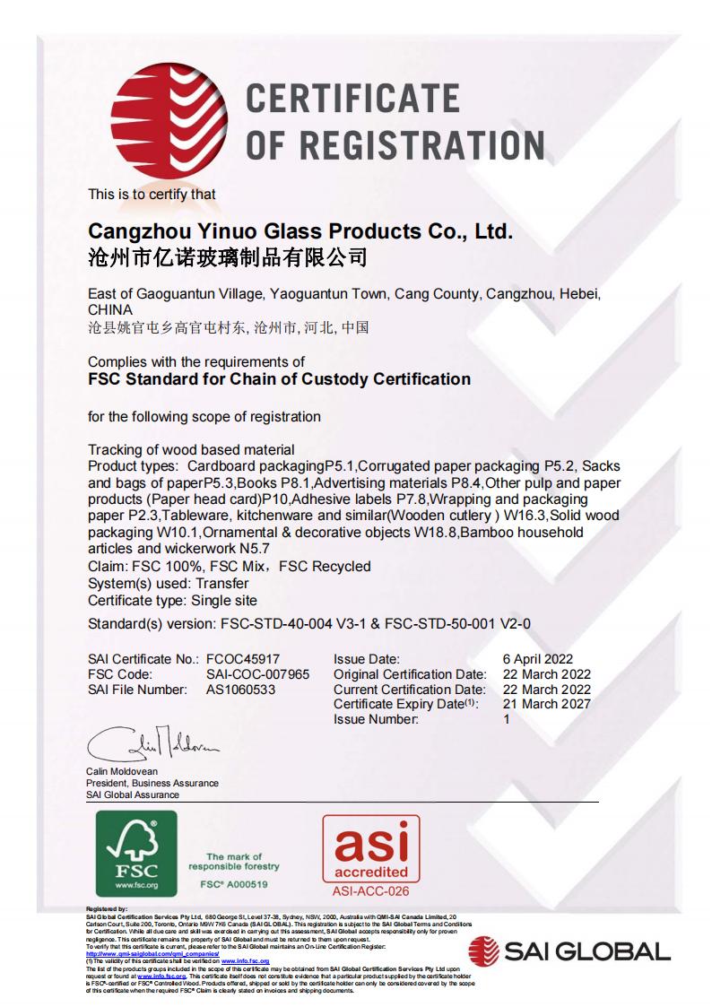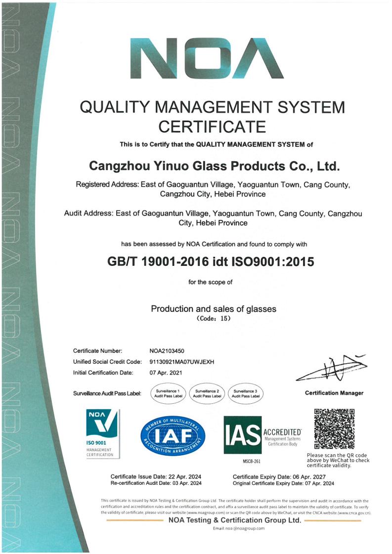 沧州市亿诺玻璃制品有限公司致力于双层玻璃杯、储物罐,玻璃茶具、水具、咖啡具等产品的研发和生产加工,公司通过了IS09001,BSCI,SEDEX,BEPI,WCA,FSC等认证,拥有完整、科学的质量管...