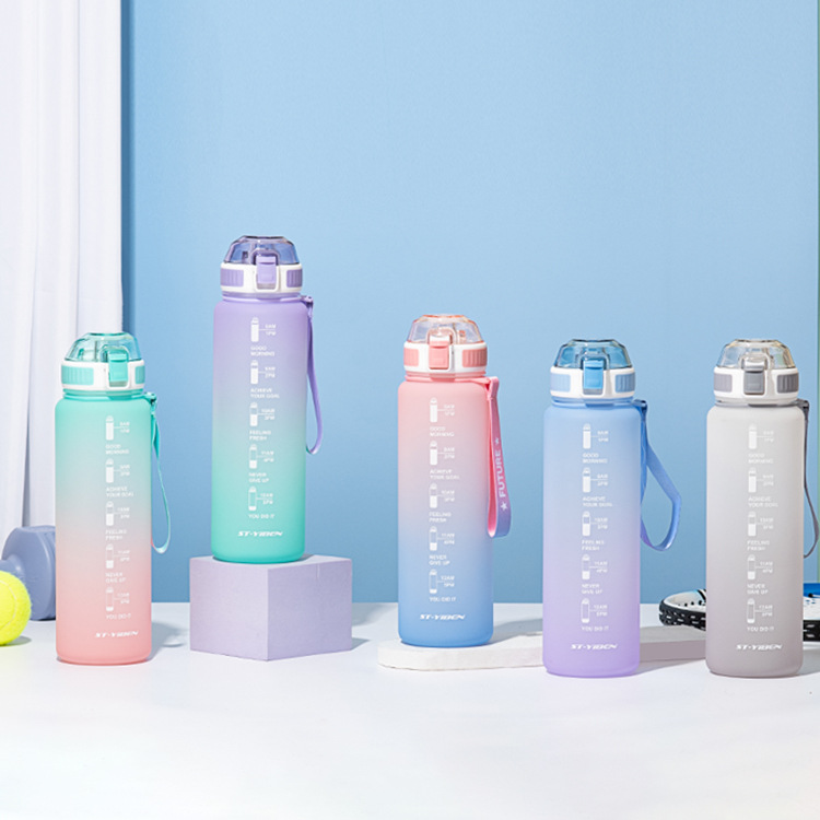 亚奇运动塑料水杯时尚简约渐变色磨砂大水壶手提直饮弹盖学生户外