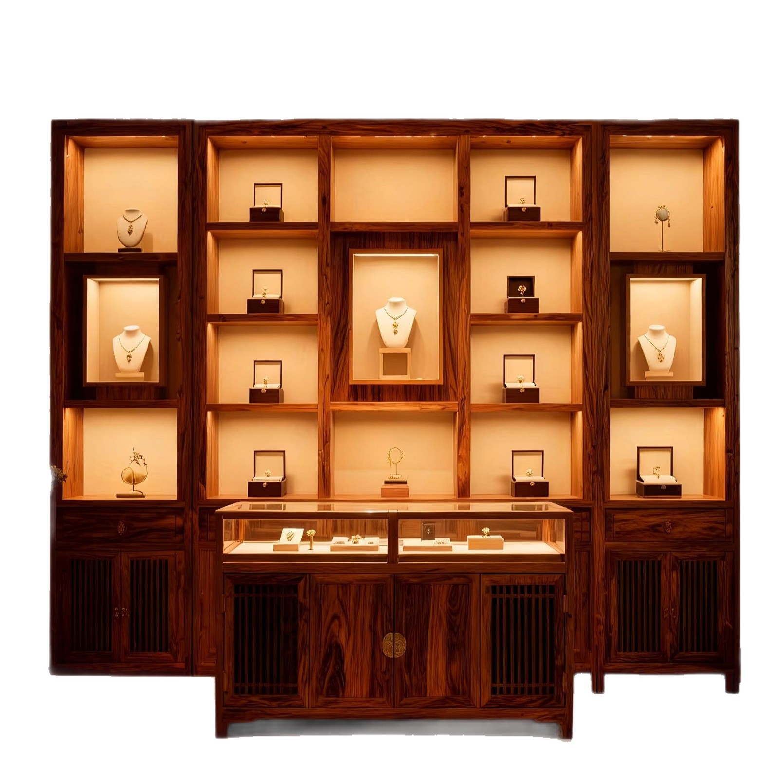 商场黄金首饰珠宝带灯展示全店定制展示道具收银中岛立式
