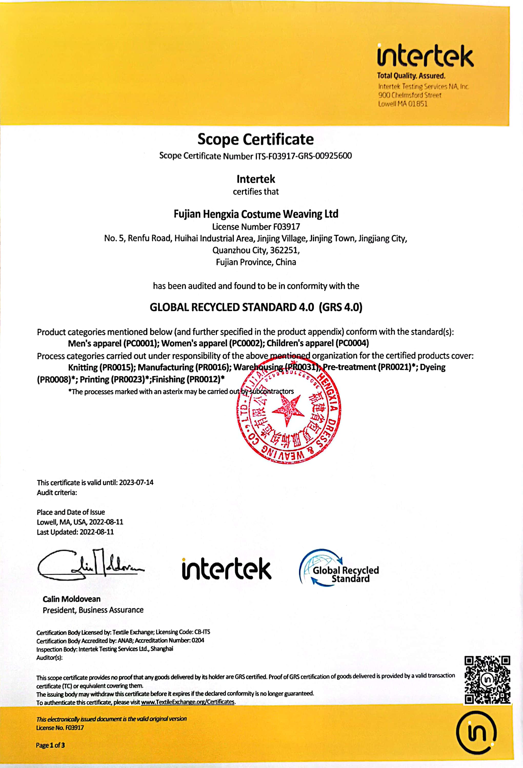 福建省恒夏服饰织造有限公司