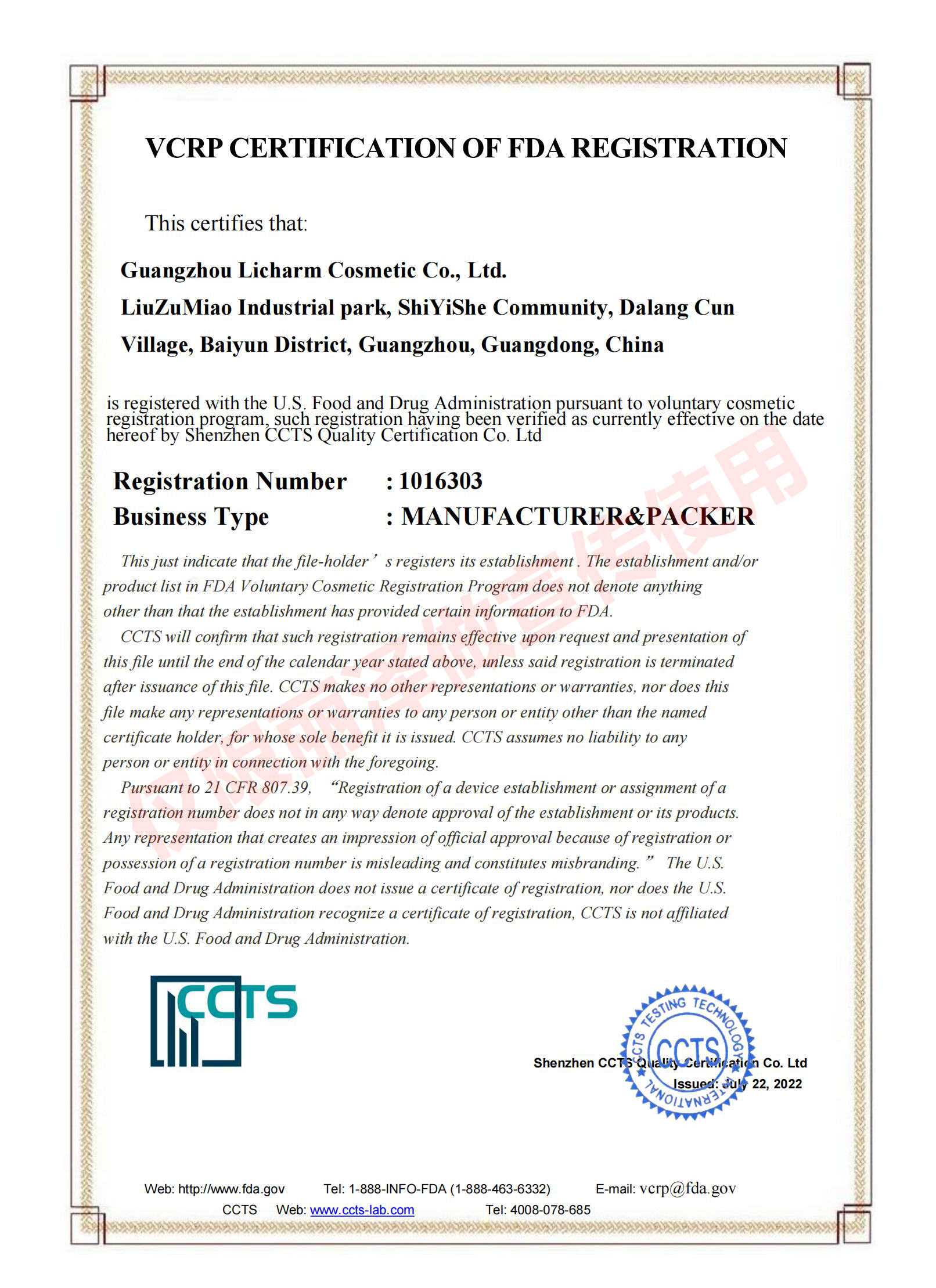 拥有FDA认证