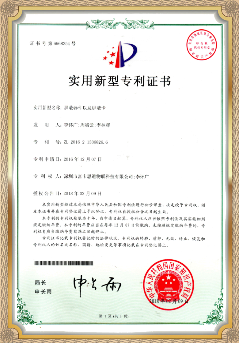 屏蔽器件以及屏蔽卡ZL 2016 2 1336826.6