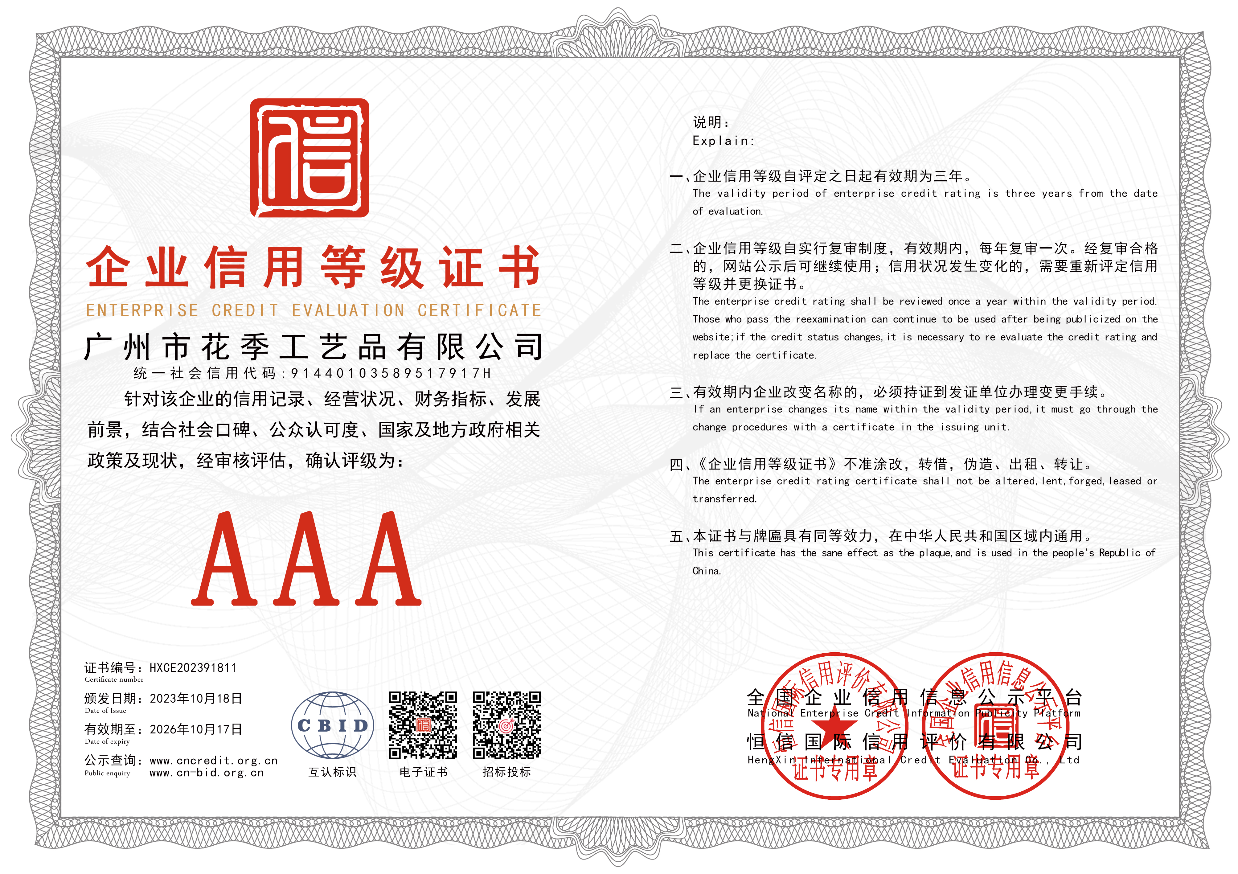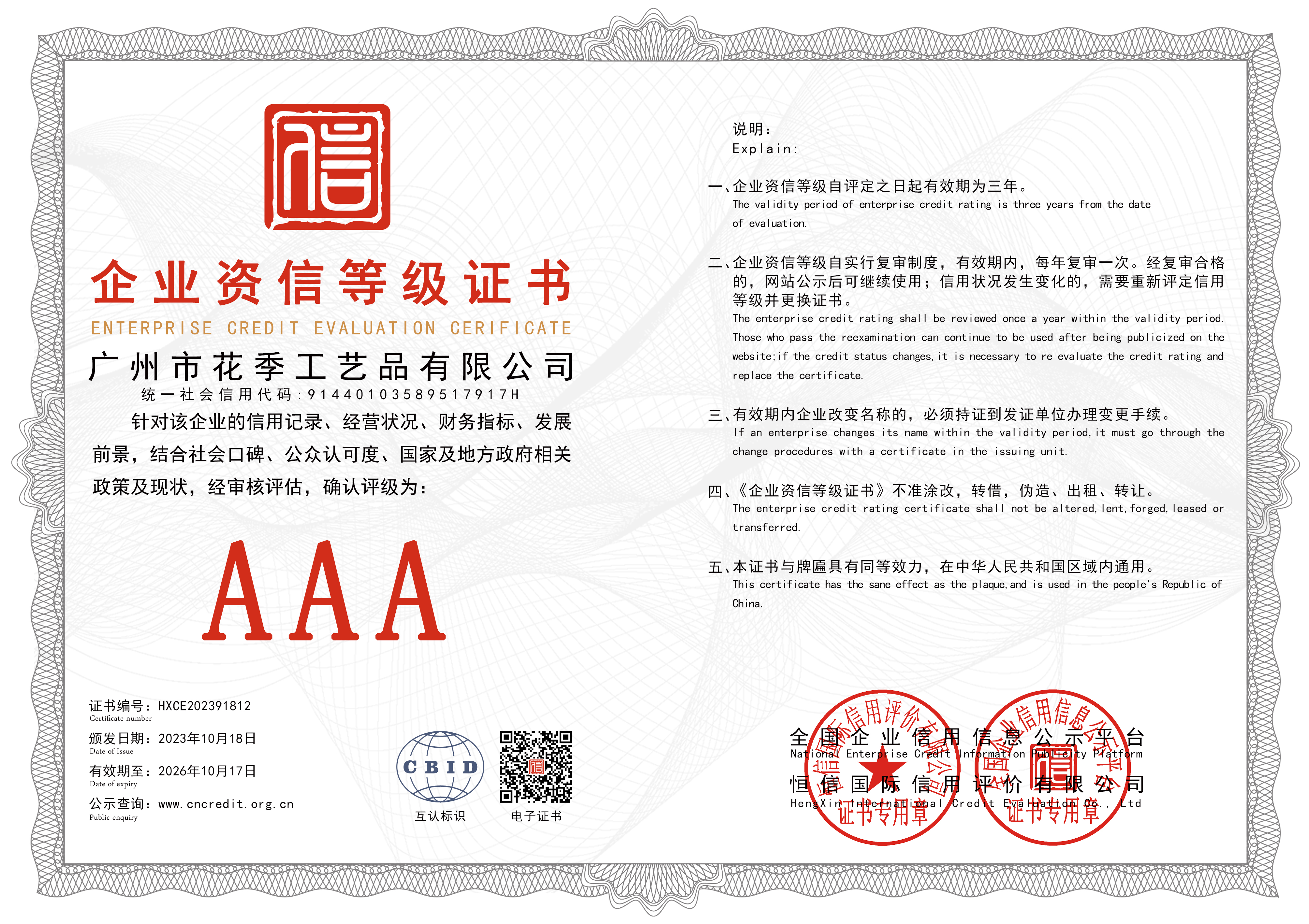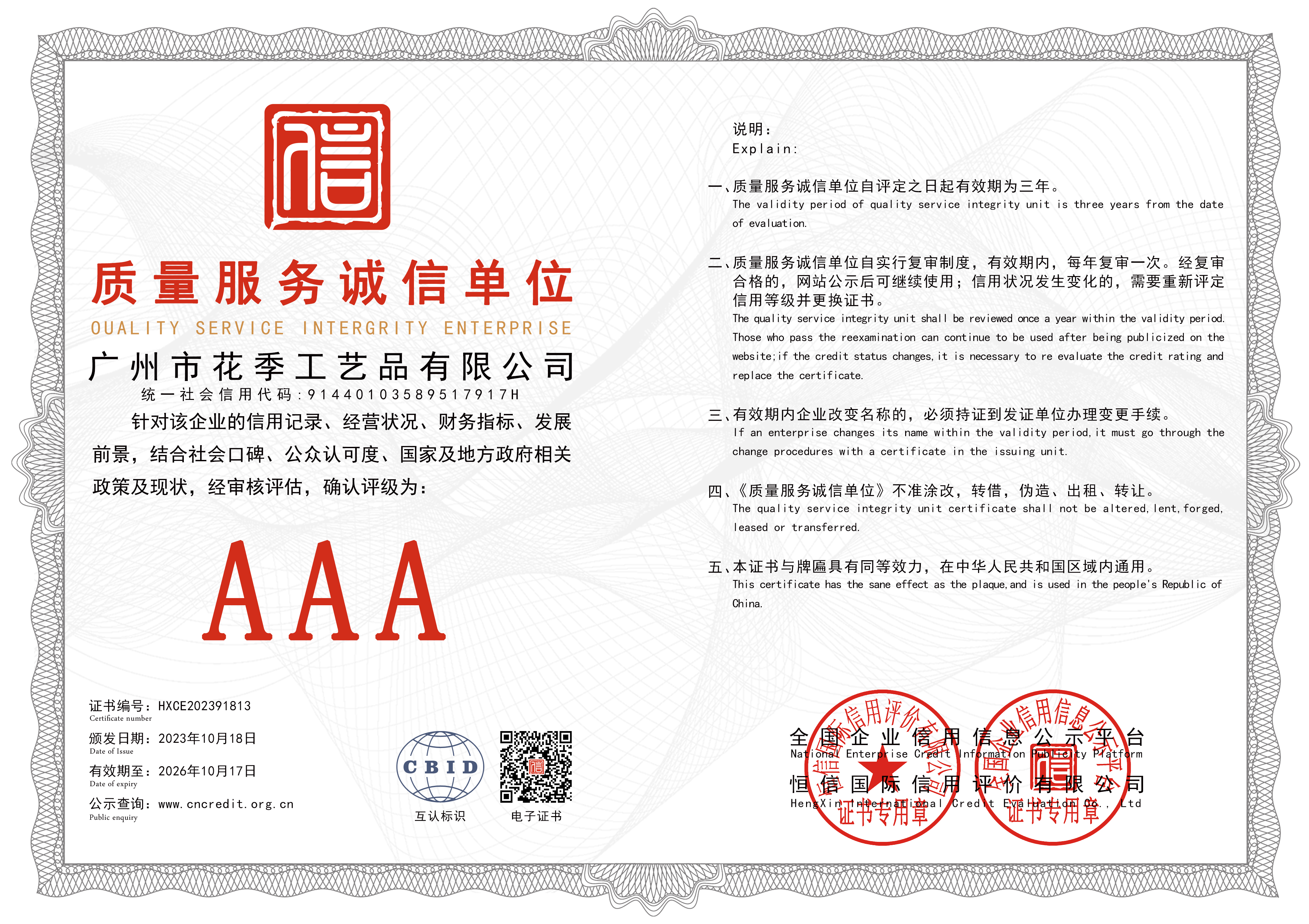 AA诚信等级