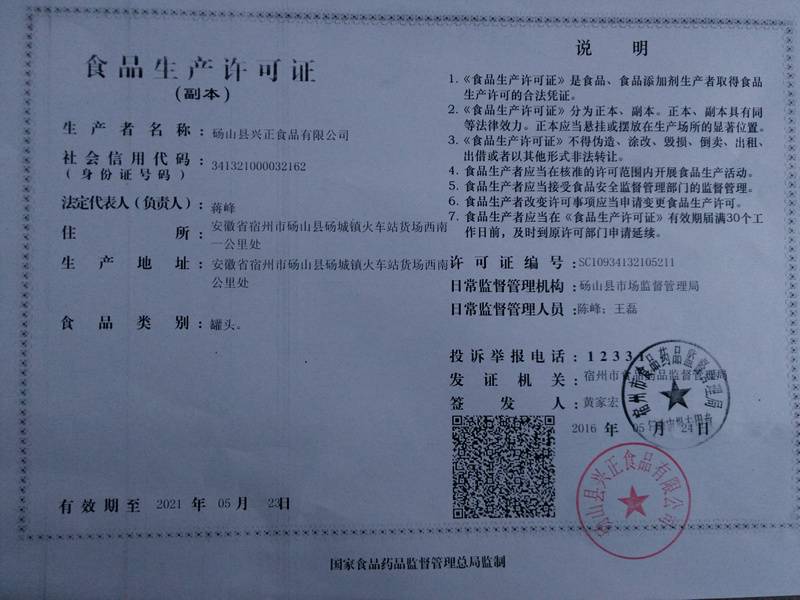 砀山县兴正食品有限公司是水果罐头、水果罐头、黄桃罐头等产品生产加工的公司,拥有完整、科学的质量管理体系。砀山县兴正食品有限公司的诚信、实力和产品质量获得业界的认可。欢迎各界朋友莅临参观、指导和业务洽谈...