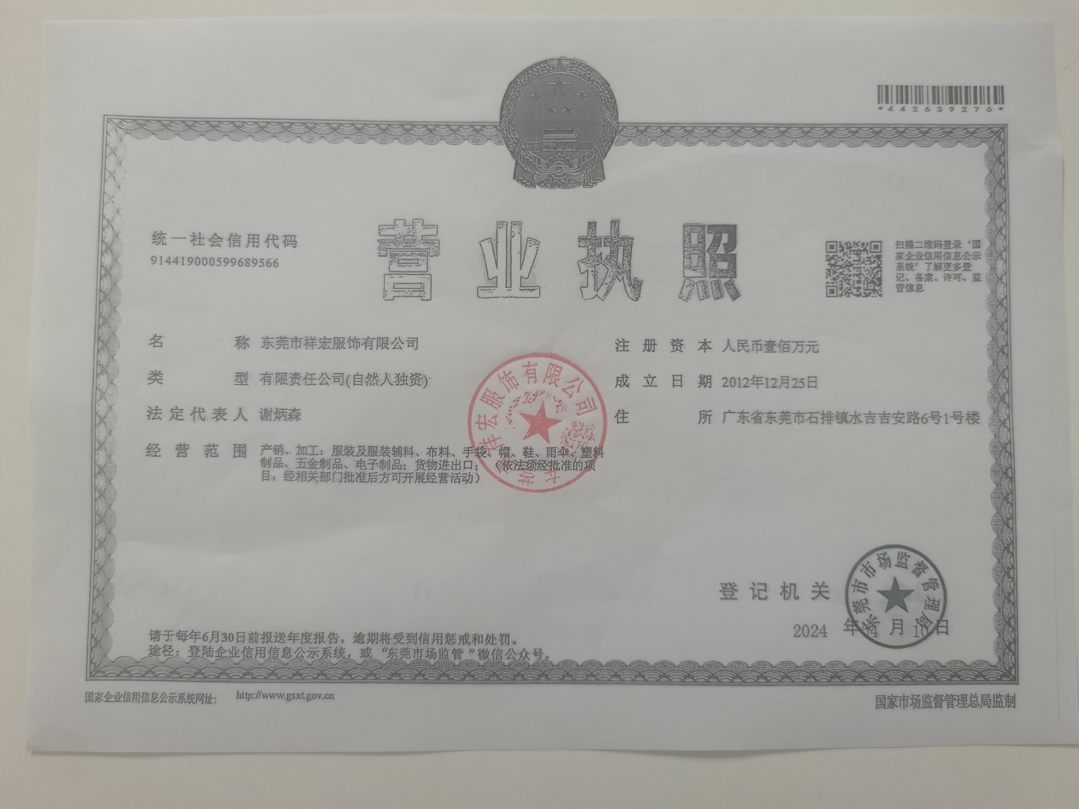 东莞市祥宏服饰有限公司