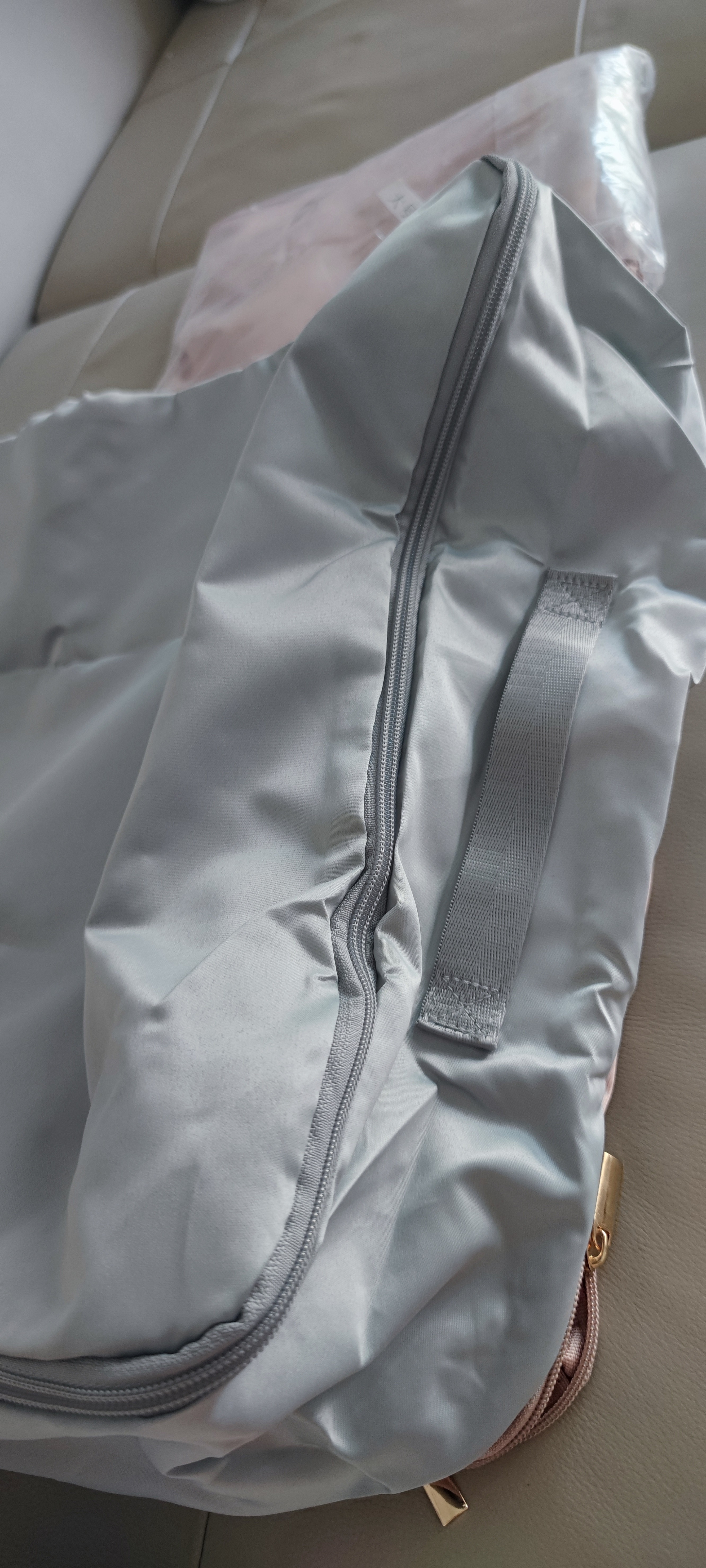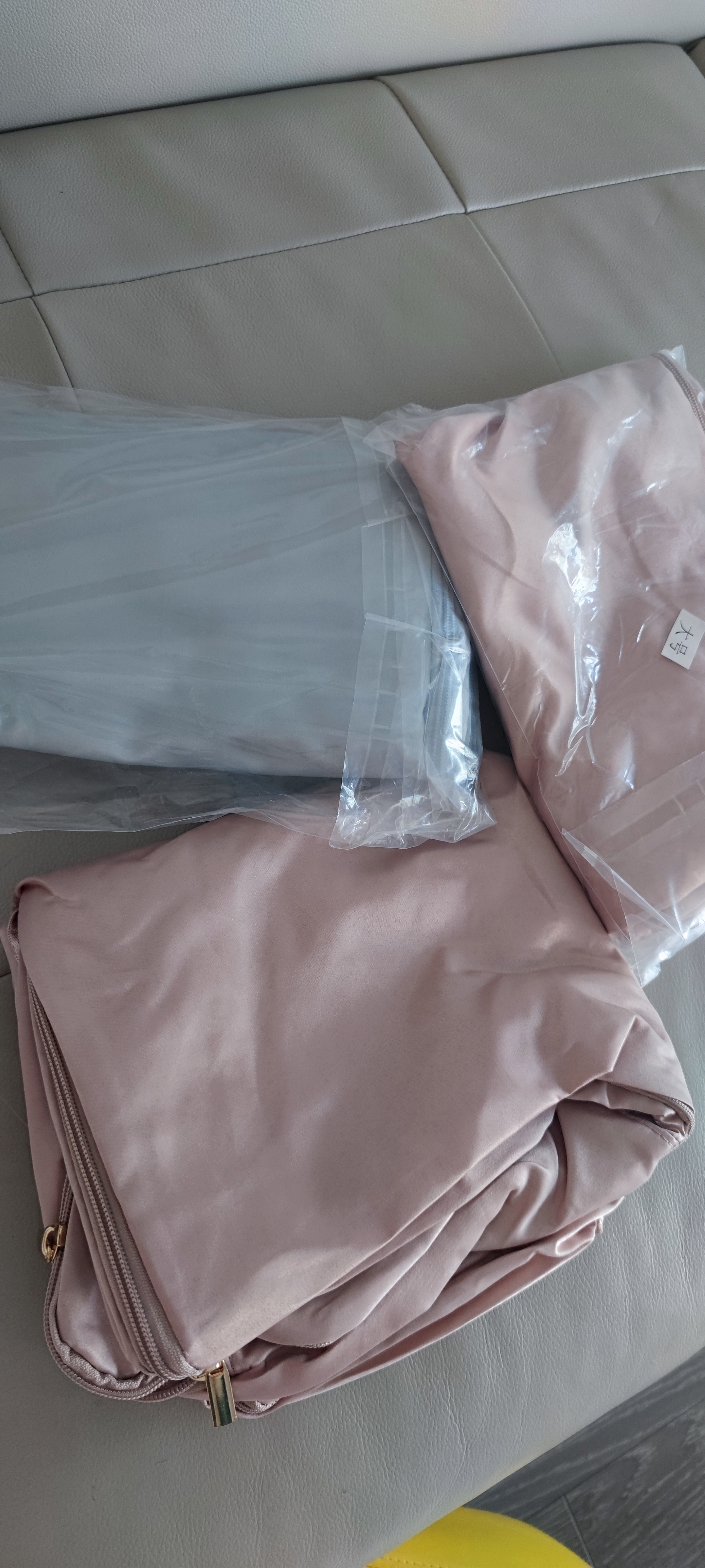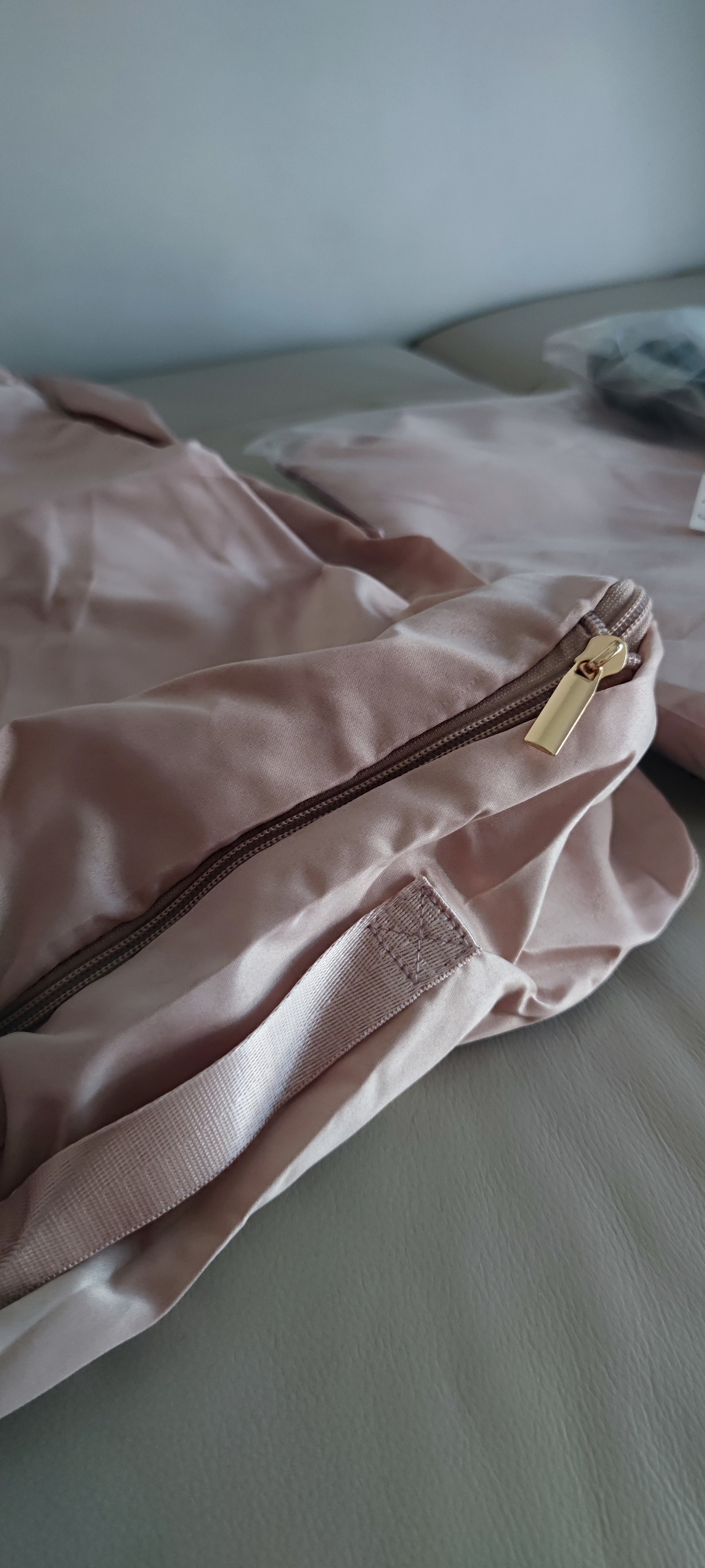 哎呦,终于淘到宝啦,物美价廉,收到很开心,必须全方位评价一下!🥰 面料:很细腻柔和,也比较厚实,有质感 颜色:低饱和度的粉色和灰蓝色,很高级 做工:做工和缝制都很细致,结实 拉链:很顺畅,用的拉头也很好,有重量 味道:有一点点布料味,很淡,凑近才能闻到 2024.5.9