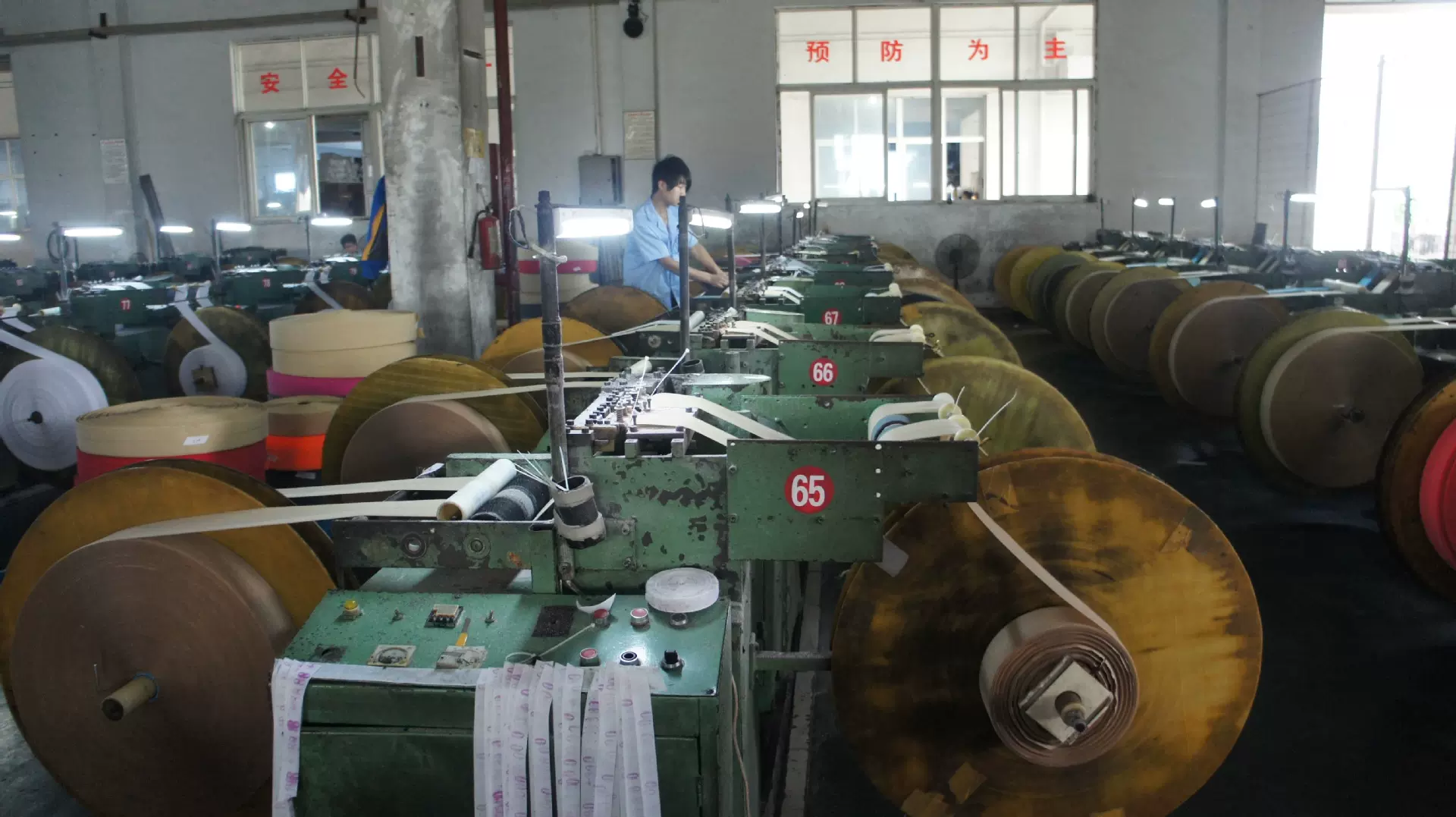 特殊工艺织带 勾面破勾 整经 分条打卷/装箱 贴胶 染色工艺 上胶定型