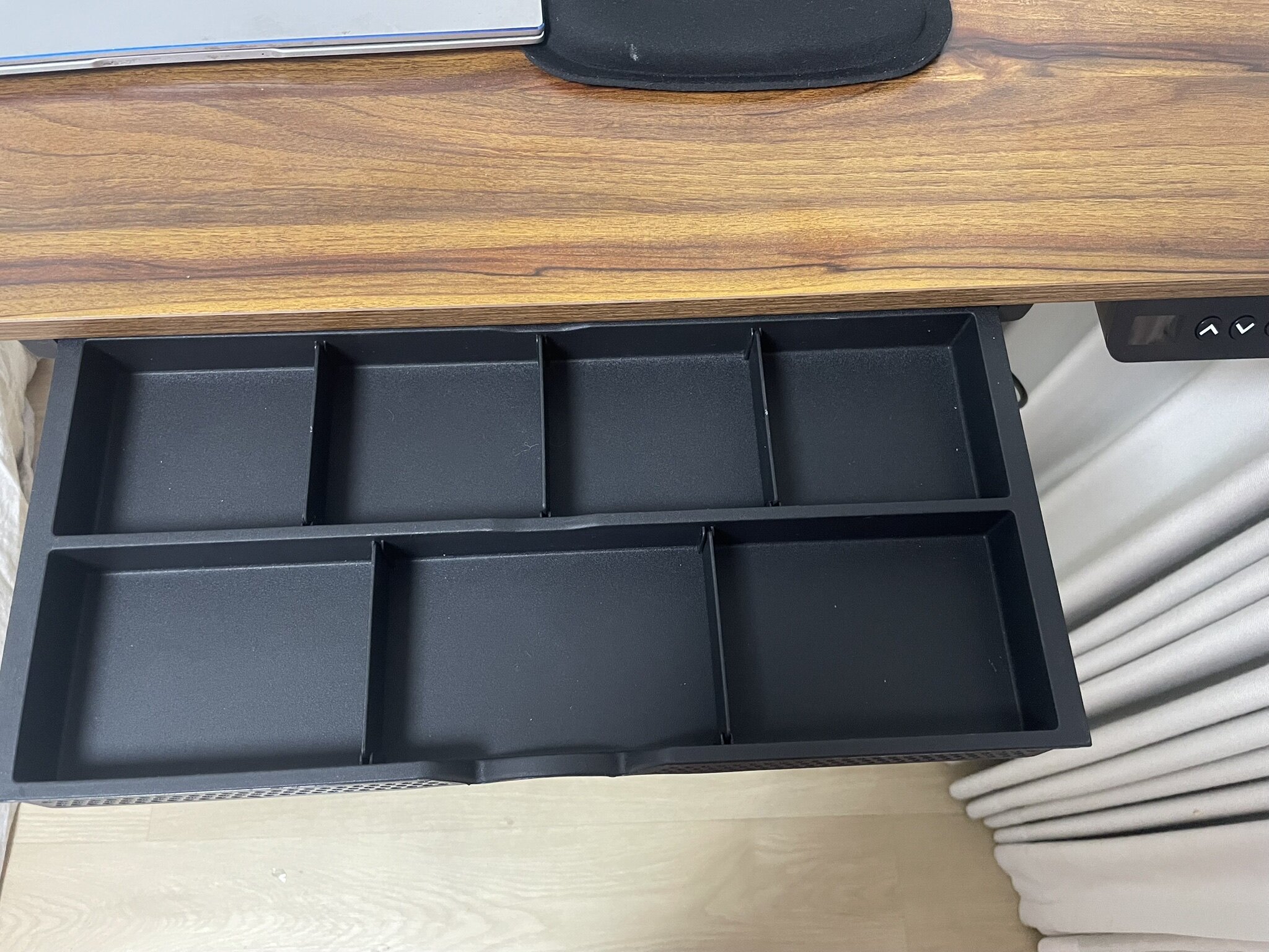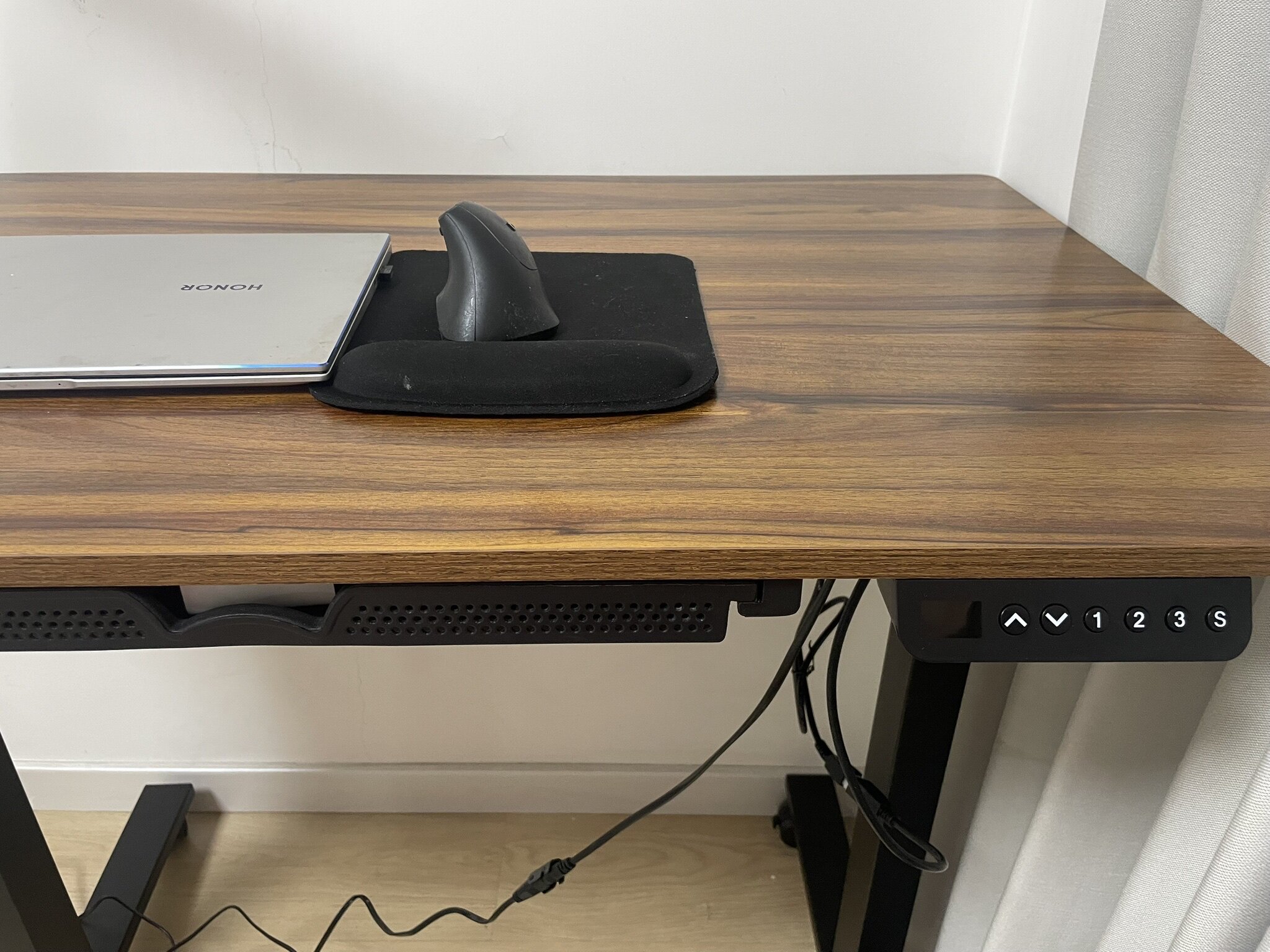 这个电动升降桌,我非常满意,质量很好,做工精良。电机起降顺畅,声音轻。桌子的舒适高度因人而异;还因我们不同的姿势而不同,坐姿和站姿而有所区别;还与我们用的椅子的坐高有关。我因为喜欢移动不把桌子固定在一个位置,还额外配置了滚轮。这个安装还是有一定的动手能力的要求的,我自知安装对我有难度,还额外购买了安装服务。客服和销售负责而友好。我还准备再买一张。2026.1.17