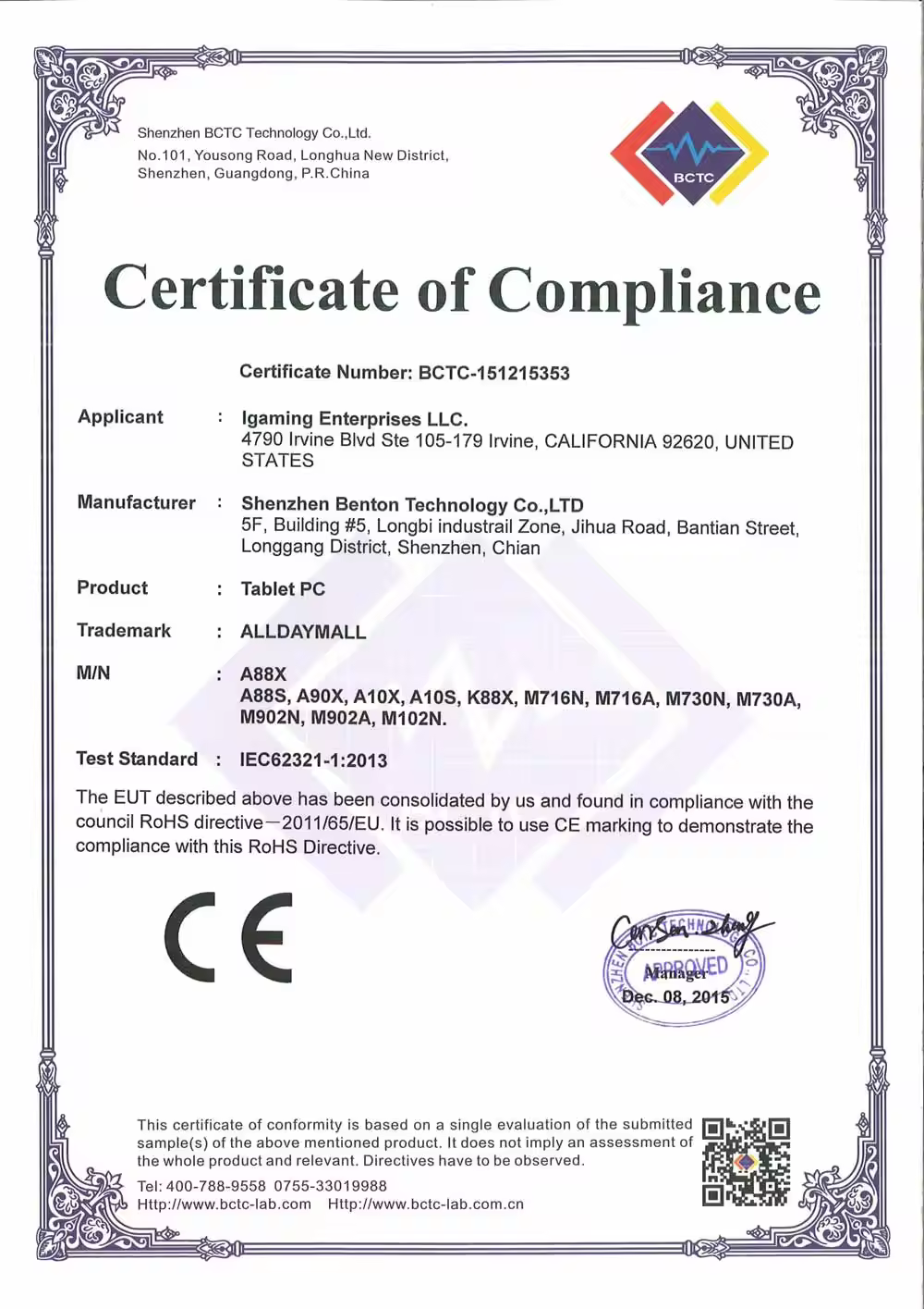 已通过TUV机构认证