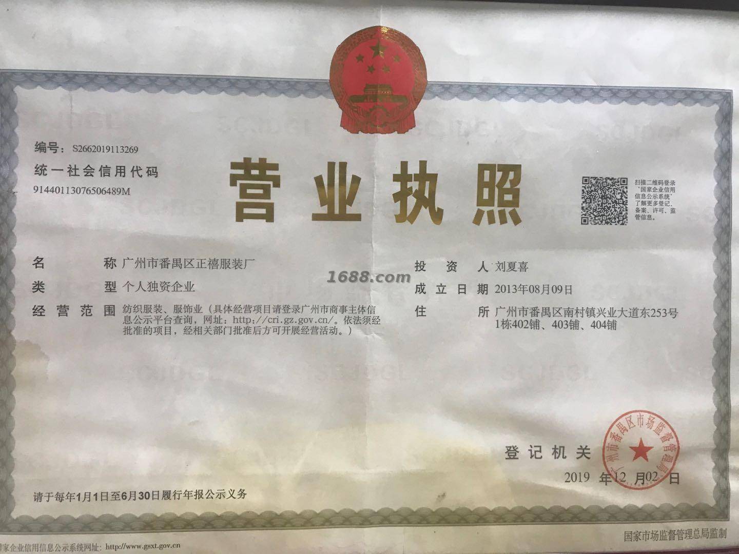 广州市番禺区正禧服装厂