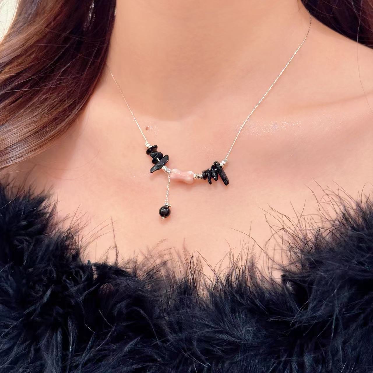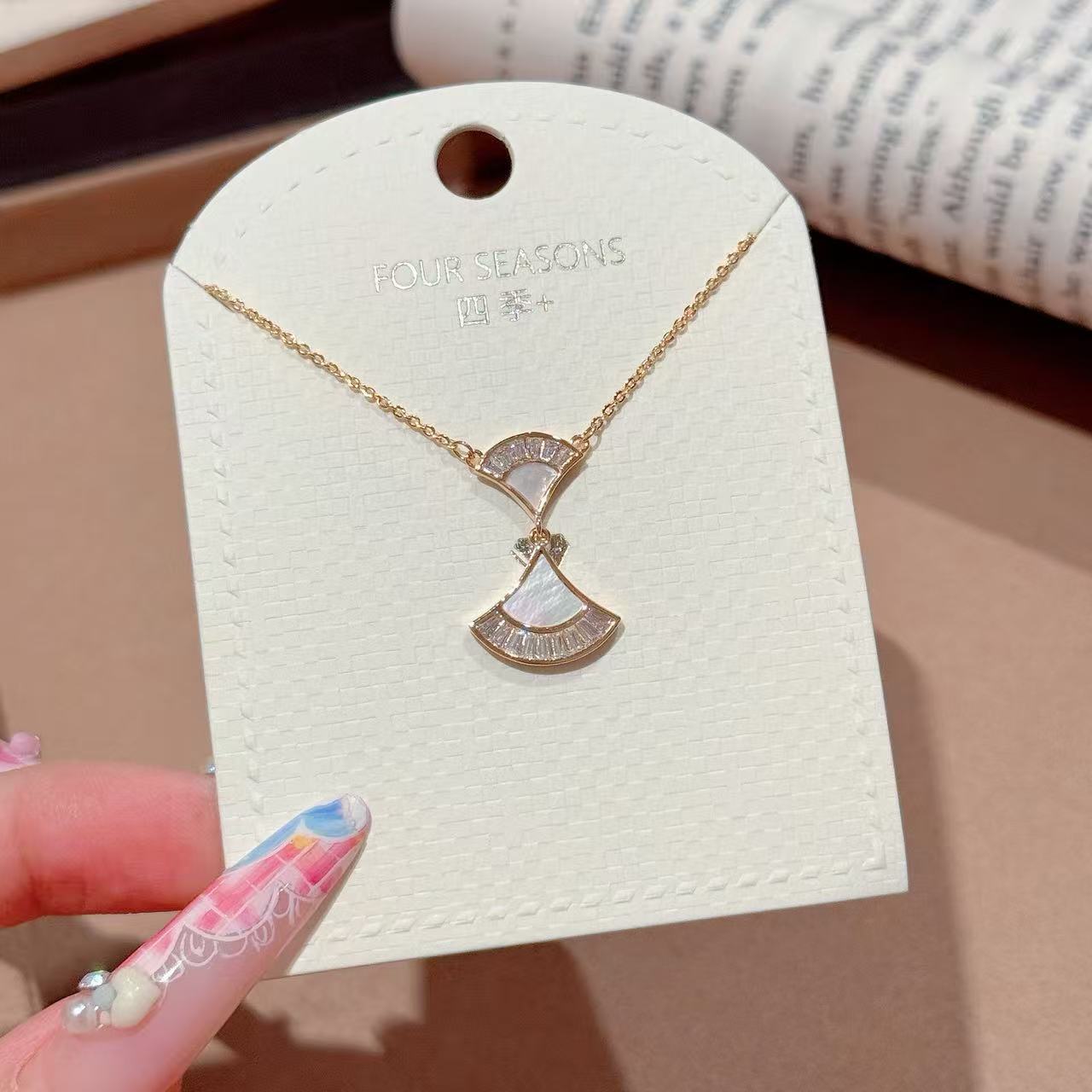 月光石蝴蝶结项链树叶项链白贝母小熊项链白贝母珍珠蝴蝶项链双层锆石圈圈项链立体五角星项链一贝子贝壳项链