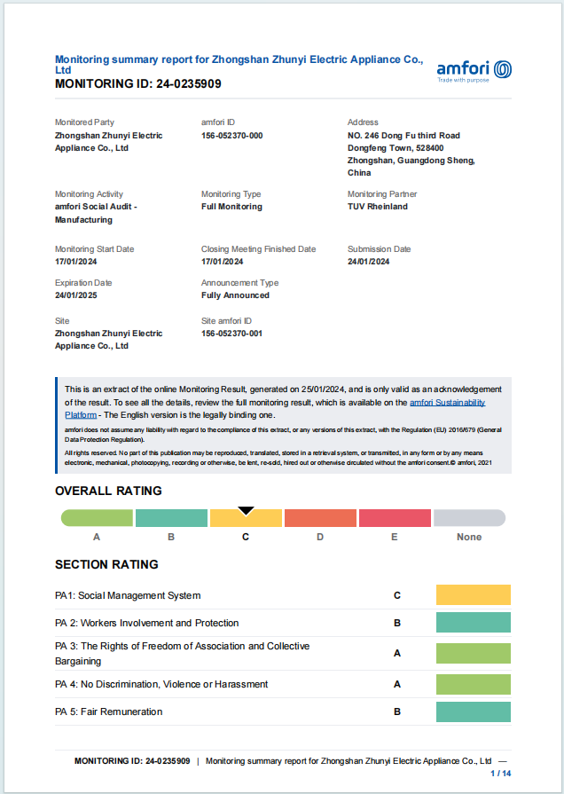 中山市准一电器有限公司成立于2012年,是一家专注生产、开发、销售电热水壶为一体的厂家,位于中山市东凤镇穗成村,工厂占地面积5500平方米,年产量216万台,于2016年创建子公司中山市赢政电器有限公...