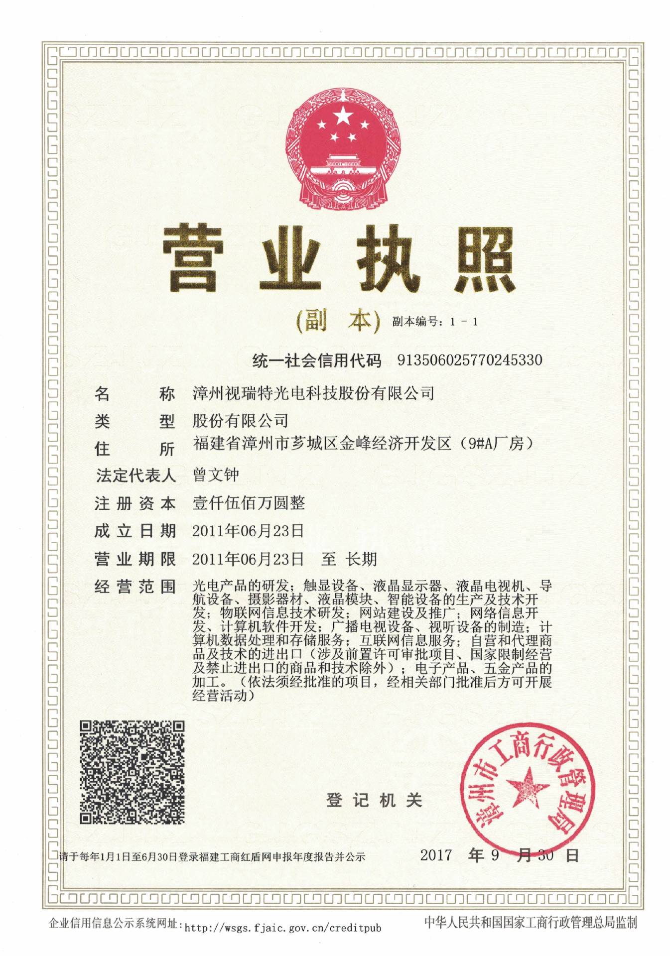 漳州视瑞特光电科技股份有限公司