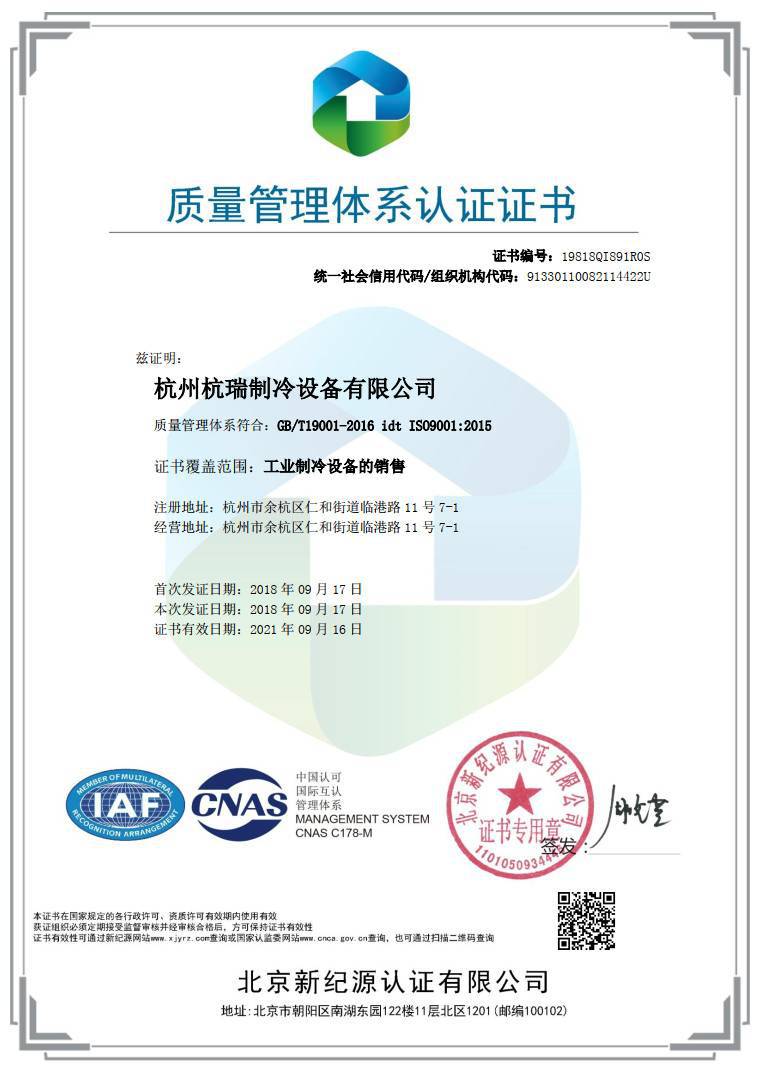 杭州杭瑞制冷设备有限公司位于素有人间天堂之称的城市——杭州,是一家集研发、生产、销售与服务于一体的工业制冷企业,是浙江省工业制冷行业的标杆企业。截至目前,公司已通过CE认证和ISO9001质量管理体系...