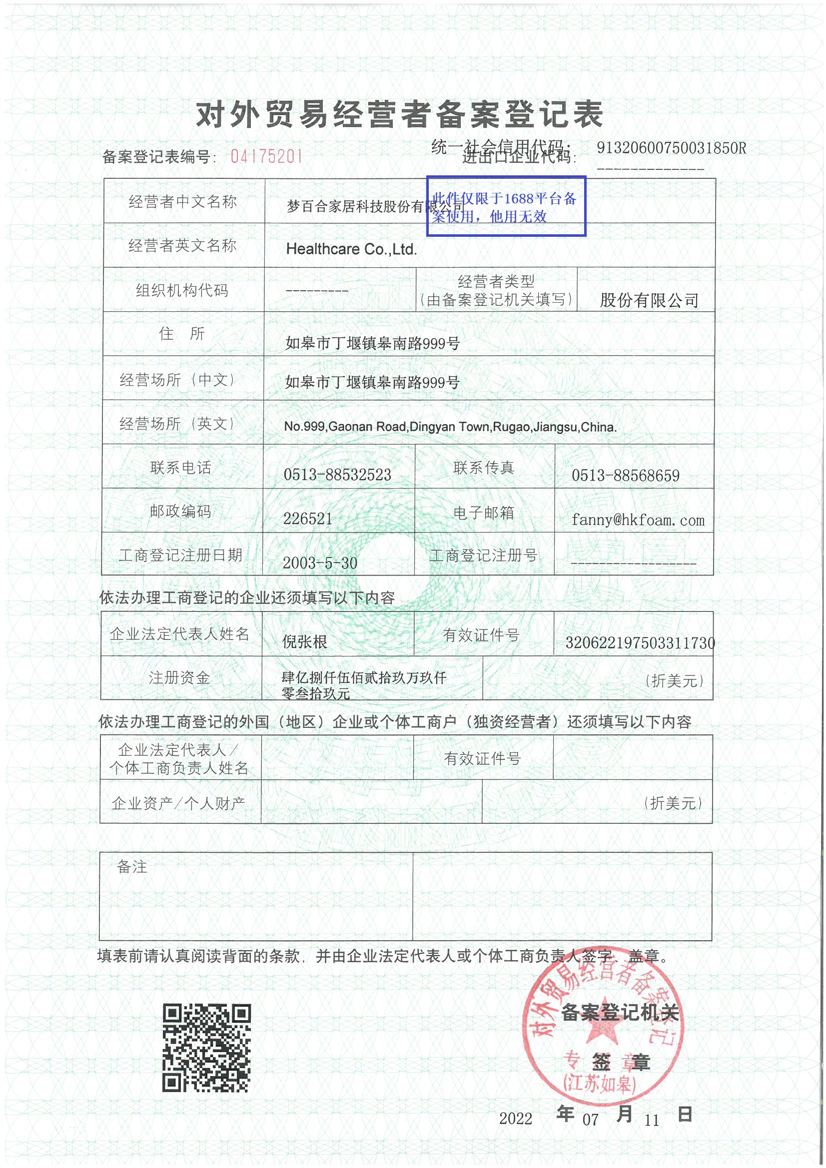 梦百合家居科技股份有限公司