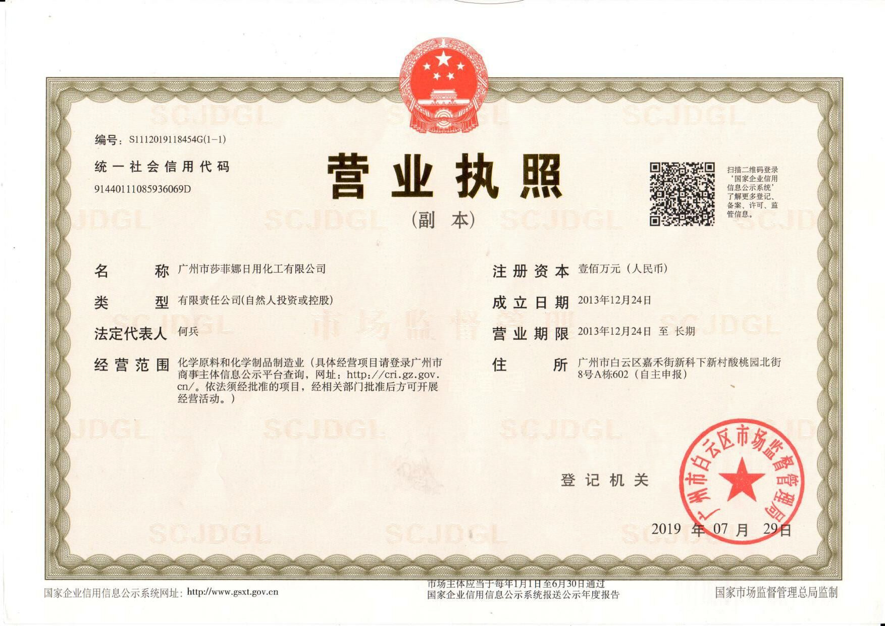 广州市莎菲娜日用化工有限公司