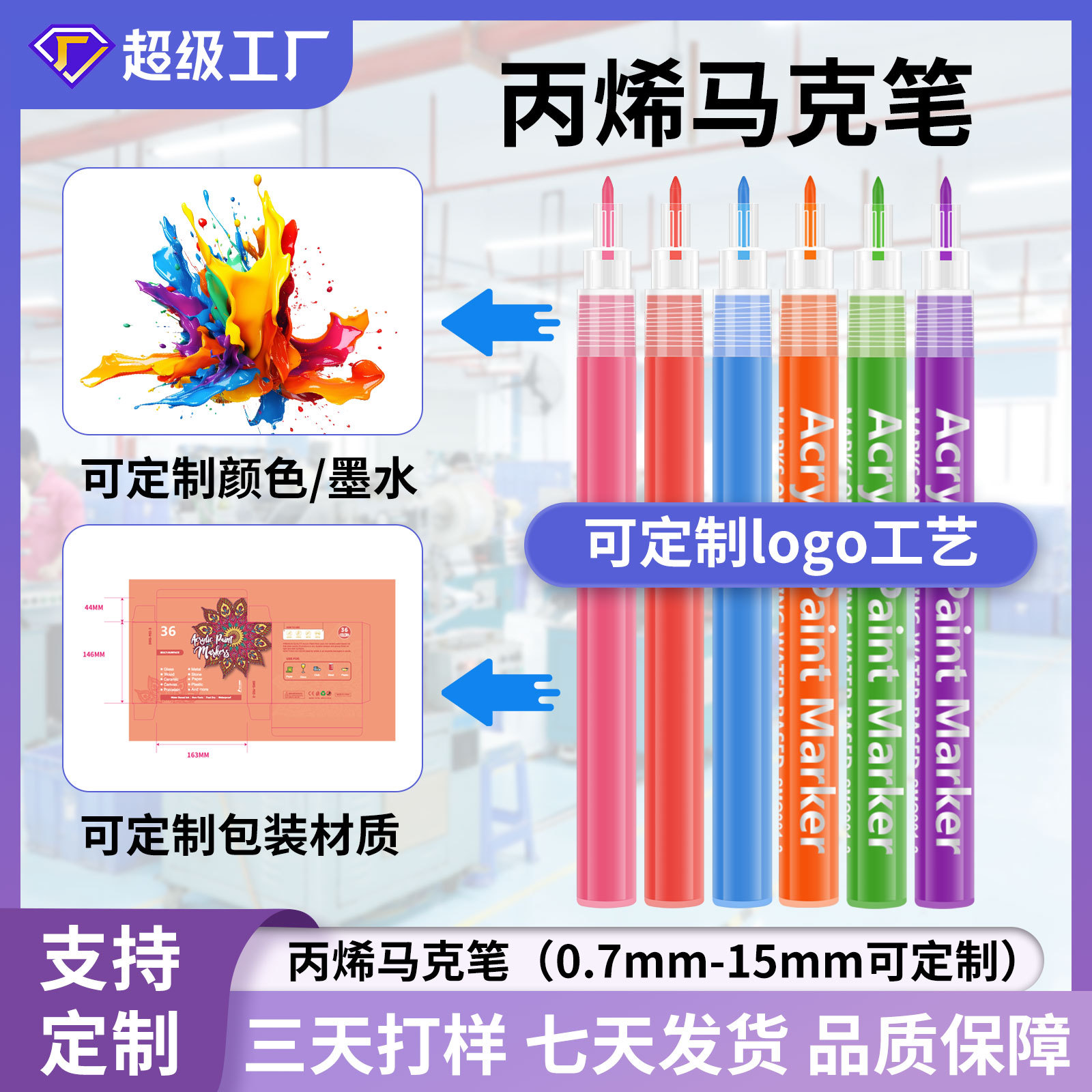 深圳索美奇文具创立于2013年,是一家专业研发,生产销售及国际进出口商贸服务于一体的企业。主要生产各种环保水性丙烯马克笔,水性油漆笔,液体粉笔,灯板笔,闪光笔,白板笔,水彩毛刷笔,酒杯笔,记号笔等创意...