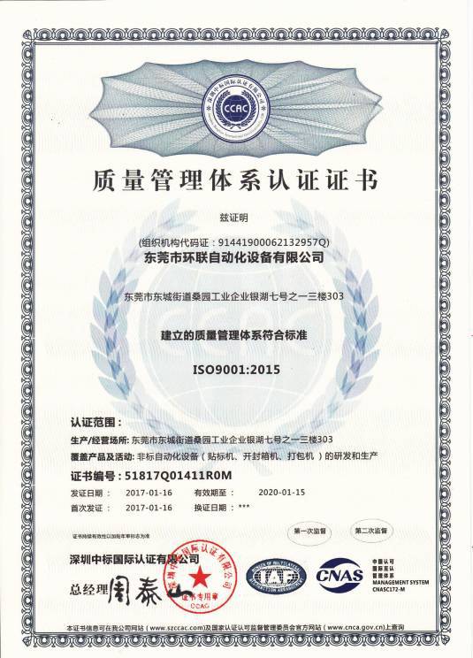 东莞市环联自动化设备有限公司,坐落于全国轻工设备制造业发达的东莞地区,致力于贴标机,装盒机,口罩机,灌装机,包装机的研发、设计、生产、销售和服务。根据业务发展需要,成立华东分公司:上海善...