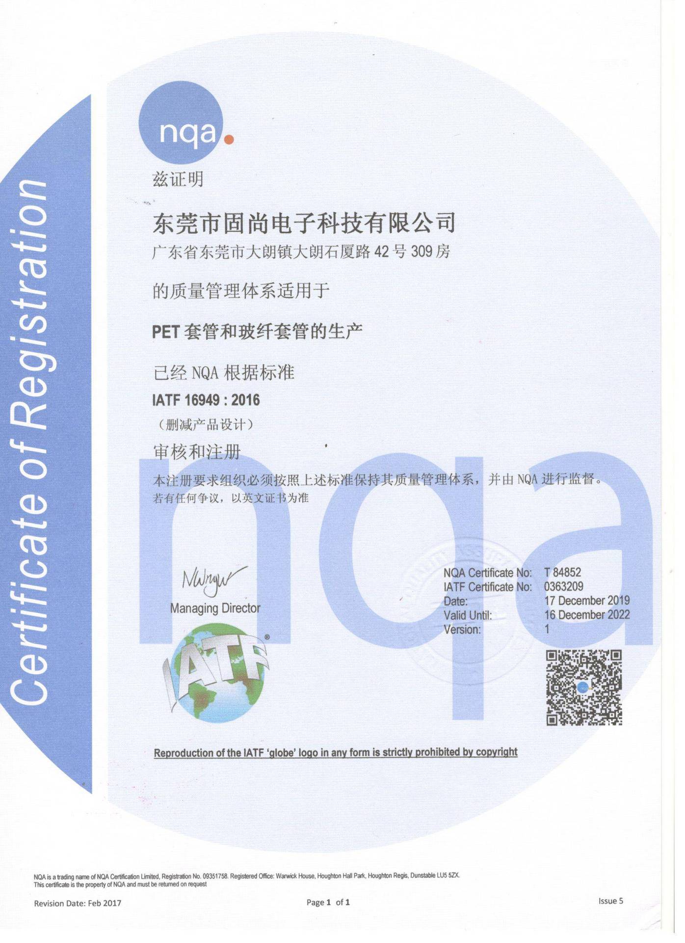 东莞市固尚电子科技有限公司于2000年12月在深圳创立,2013年8月迁入东莞,更名为“东莞市固尚电子科技有限公司”。近20年来,一直专注于编织套管及相关绝缘保护套管的研发、设计、生产、销售,是一家专...