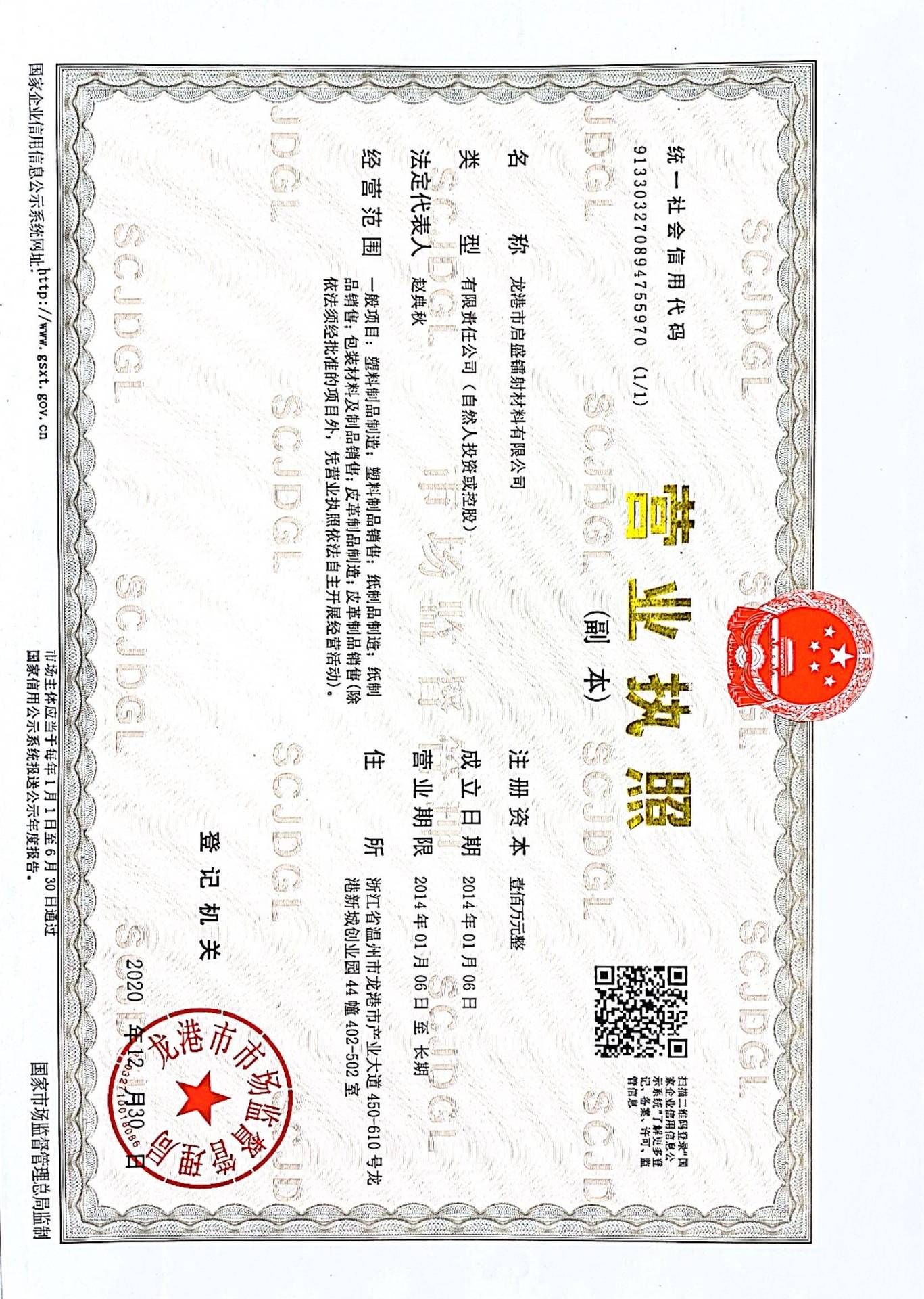 龙港市启盛镭射材料有限公司