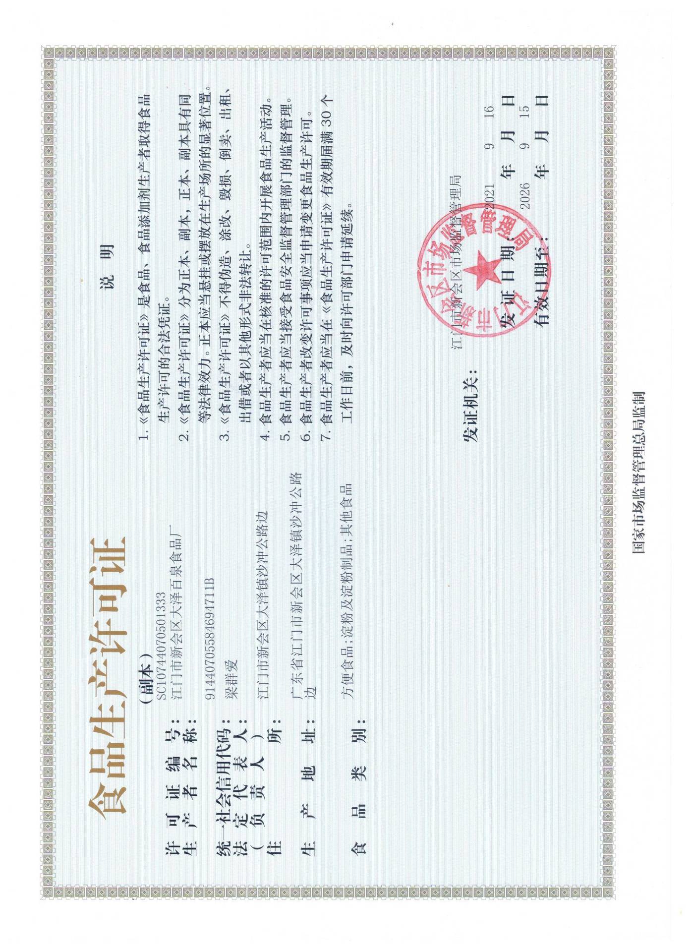江门市新会区大泽百泉食品厂