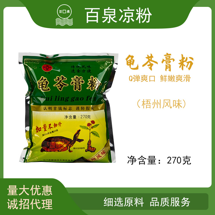 江门市新会区大泽百泉食品厂是龟苓膏粉、仙草粉、烧仙草粉、黑凉粉、白凉粉食品等产品专业生产加工的厂家。 本厂位于江门市新会区大泽镇沙冲工业开发区,公司总占地面积6000平方米,产品销往全国各地大型...