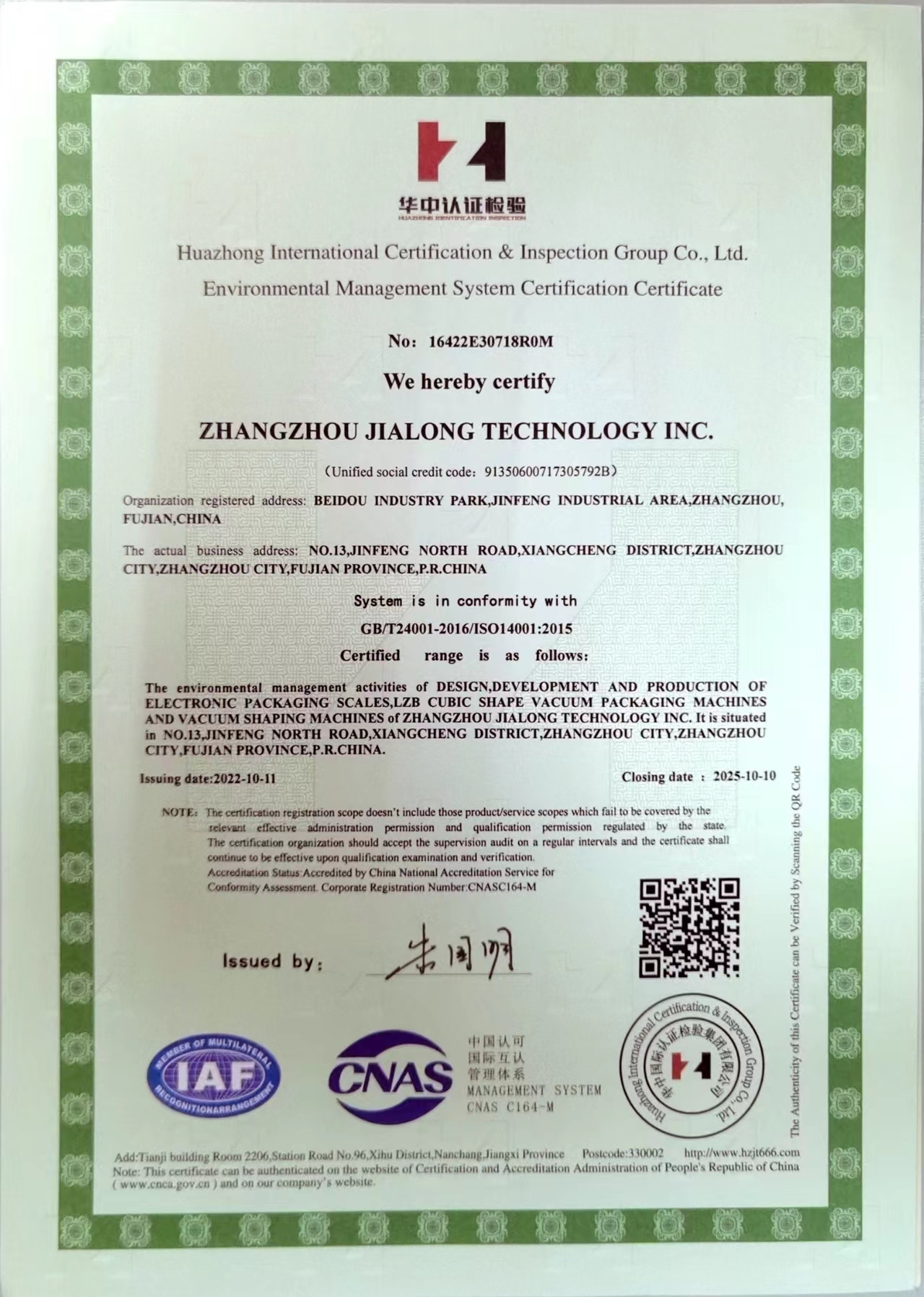 ISO 14001认证