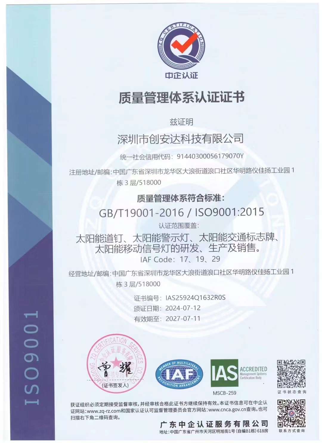 深圳市创安达科技有限公司,坐落在广东深圳,是一家专业从事太阳能LED交通产品的研发,生产和销售为一体的国家高新科技企业。 公司秉承“科技创新,绿色环保,畅想未来“的方针,专注于太阳能LED交通...