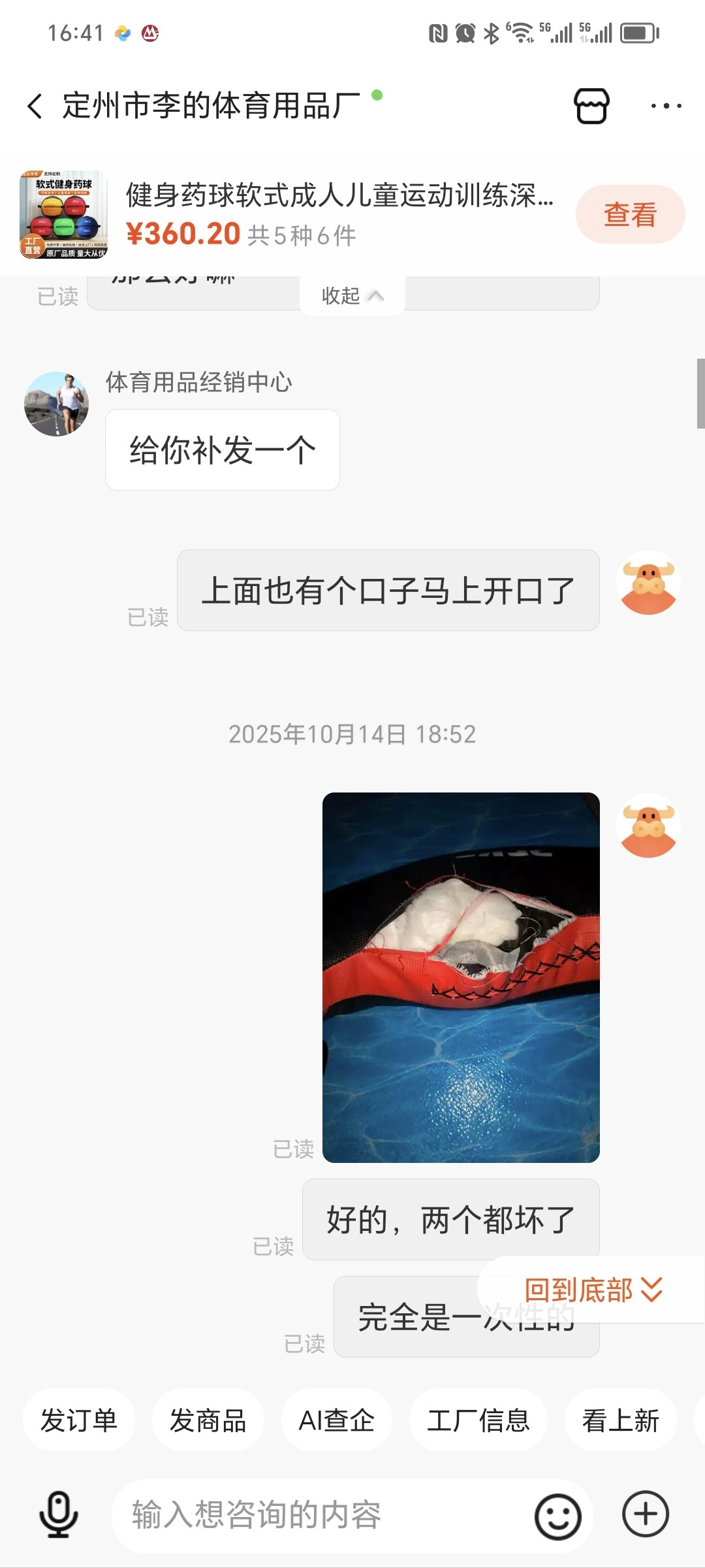 才到就用了,一组深蹲跳就是这个样子啦,两个牛角包都是一次性的,联系商家说是抱歉不好意思重新发两个,半个月过后依然没有下文,每次联系都是等,各位路过的记得擦亮眼睛!2025.10.31