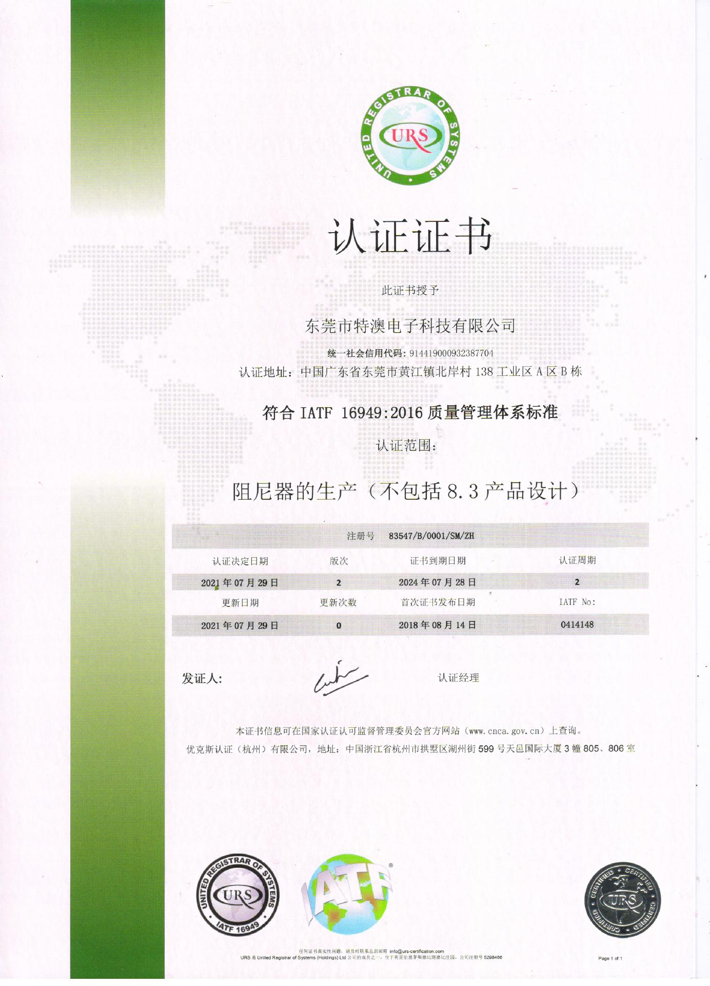 ISO/TS 16949认证