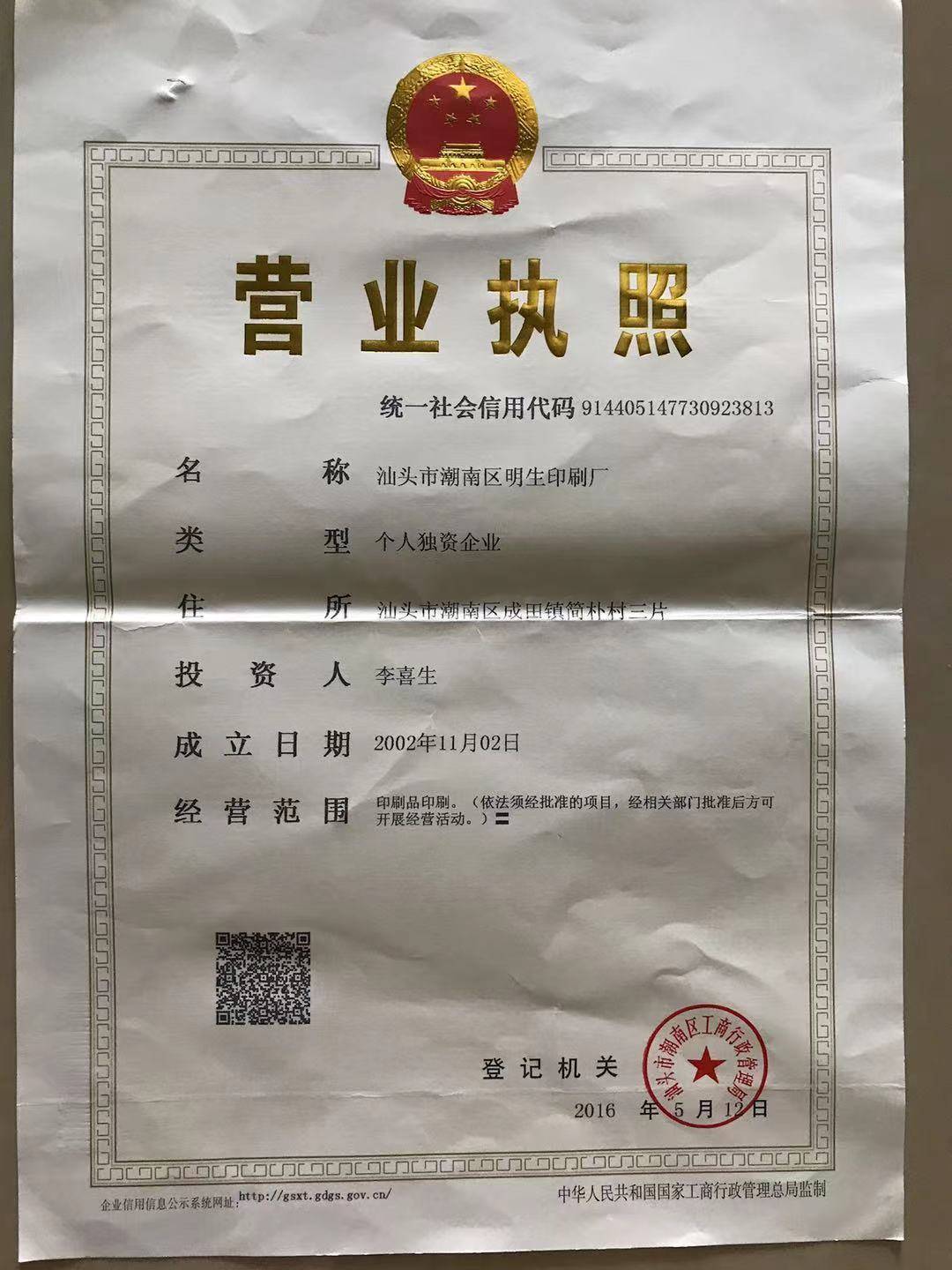 汕头市潮南区明生印刷厂