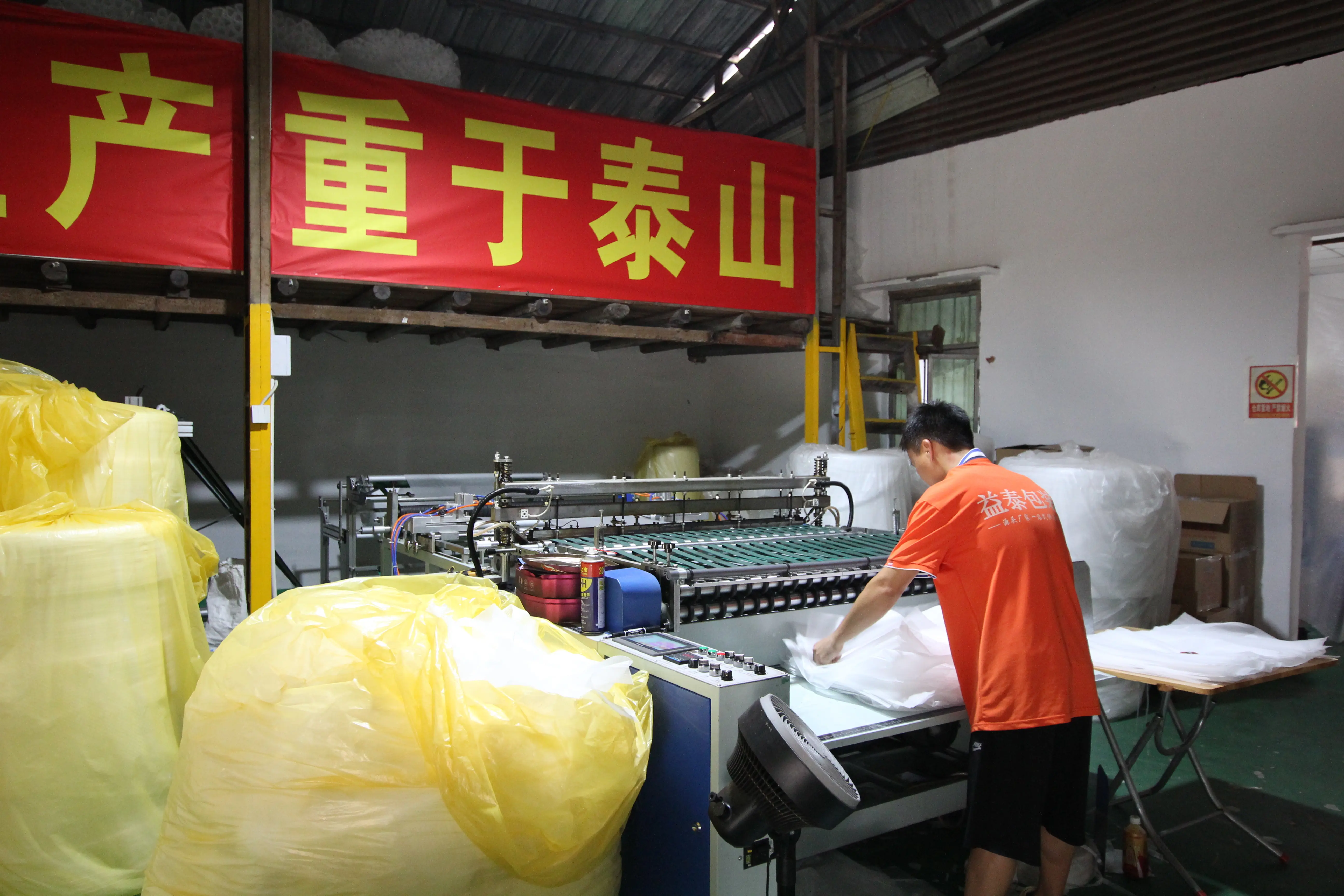 中山市益泰包装材料有限公司 成立于2014年.公司专业生产研发塑料包装产品,公司为了优化产业链而分册成立塑料包装事业部,包装设备事业部,劳保产品事业部,公司从原材料采购控制,到生产控制,运输控制,我公...