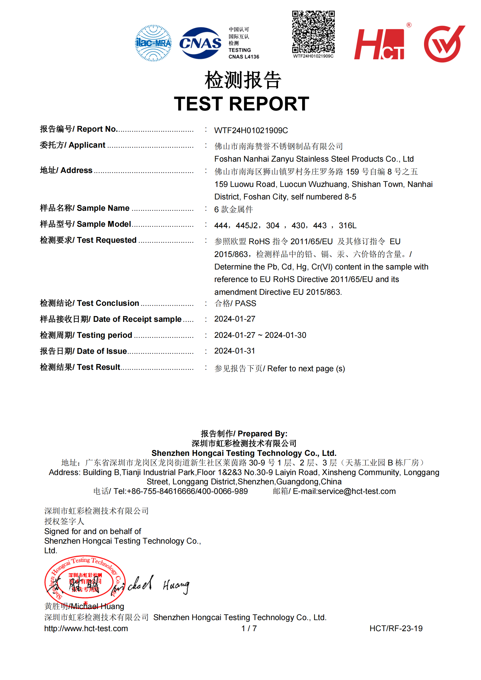 佛山市南海赞誉不锈钢制品有限公司