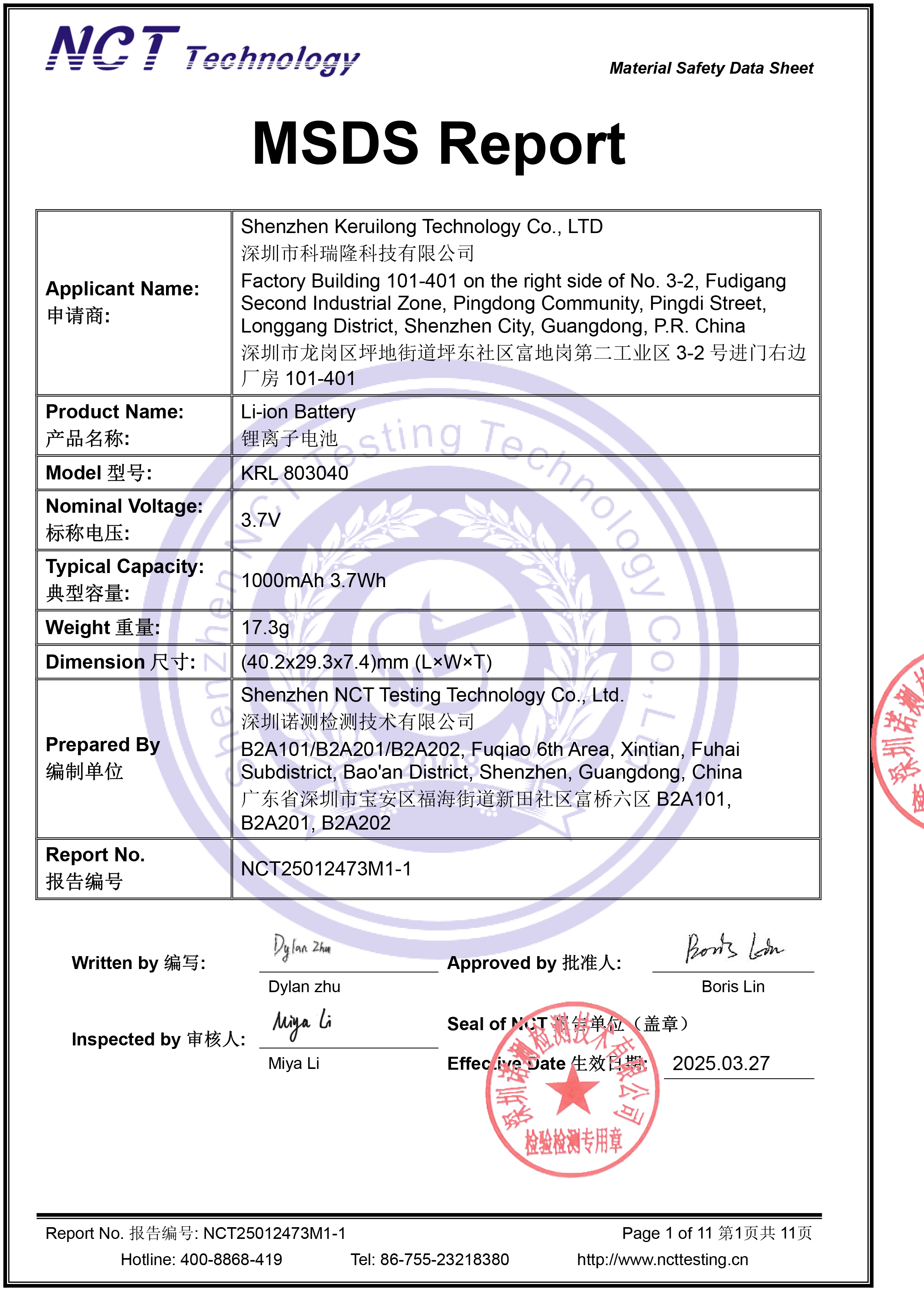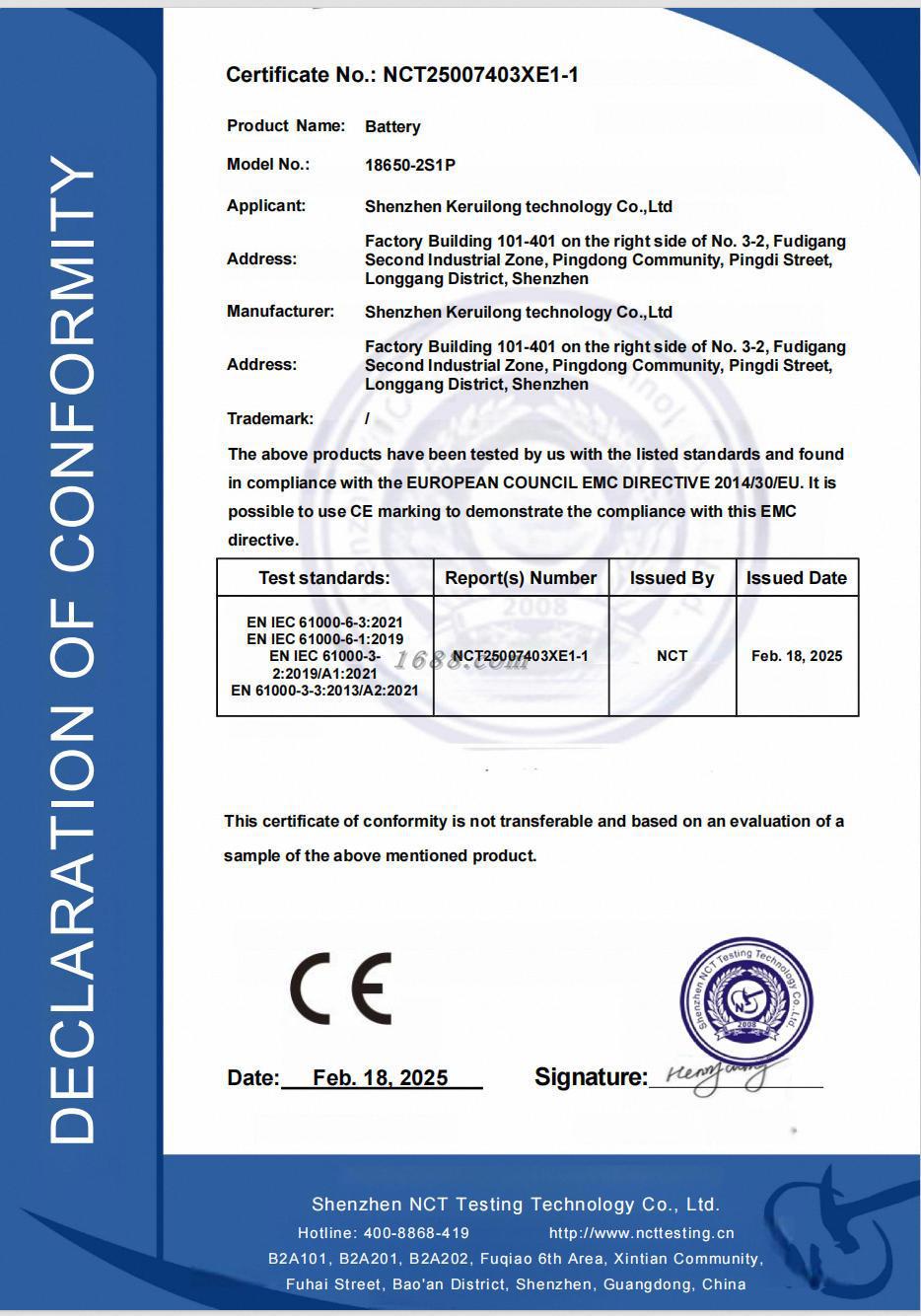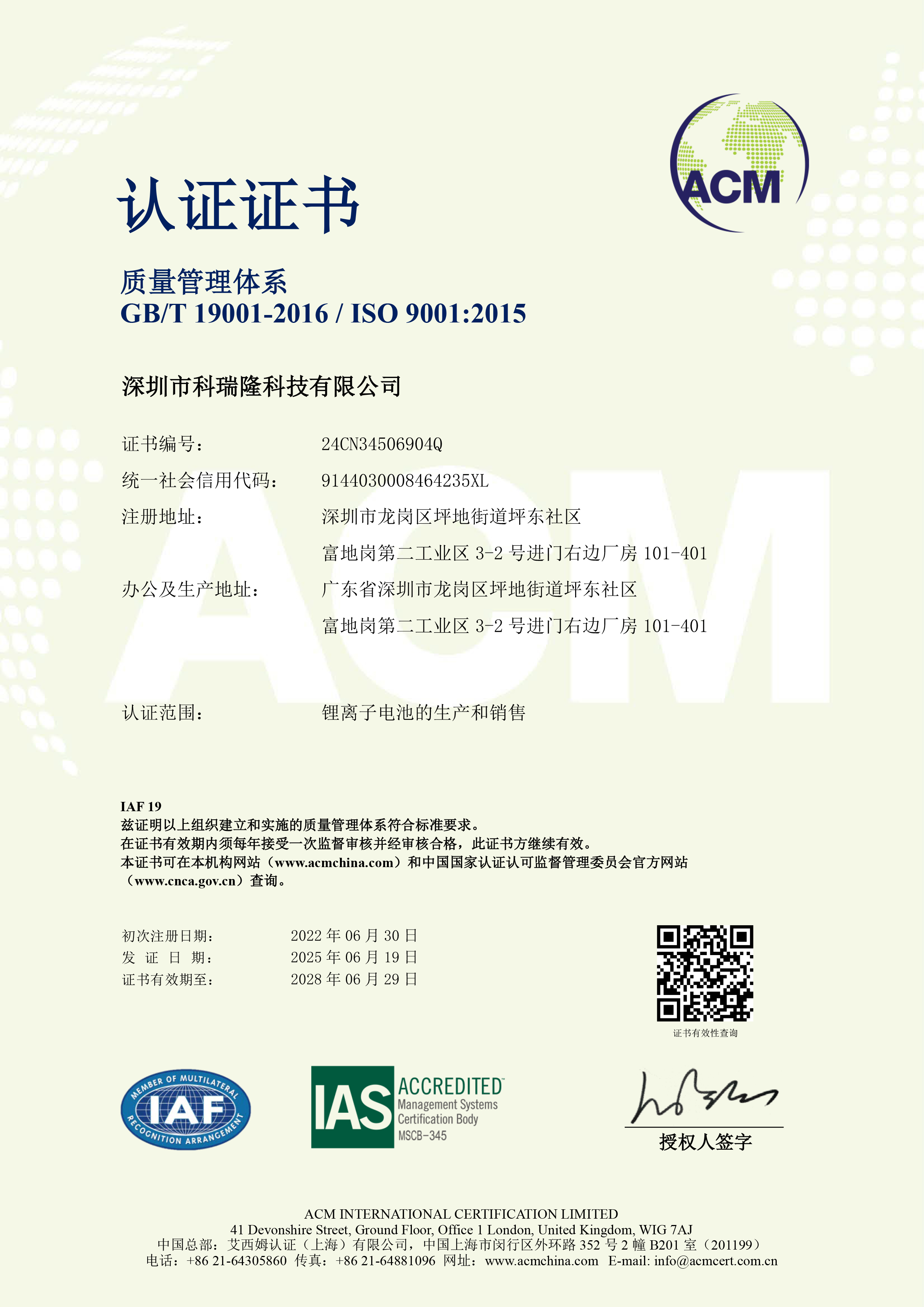 科瑞隆科技最早成立于2005年,是集聚合物锂电池的研发、生产、销售于一体的专业厂家。公司一直注重研发及创新,产品证书齐全有KC、CE、CCC、UL、PSE、BIS、CB、MSDS、UN38.3等认证,...