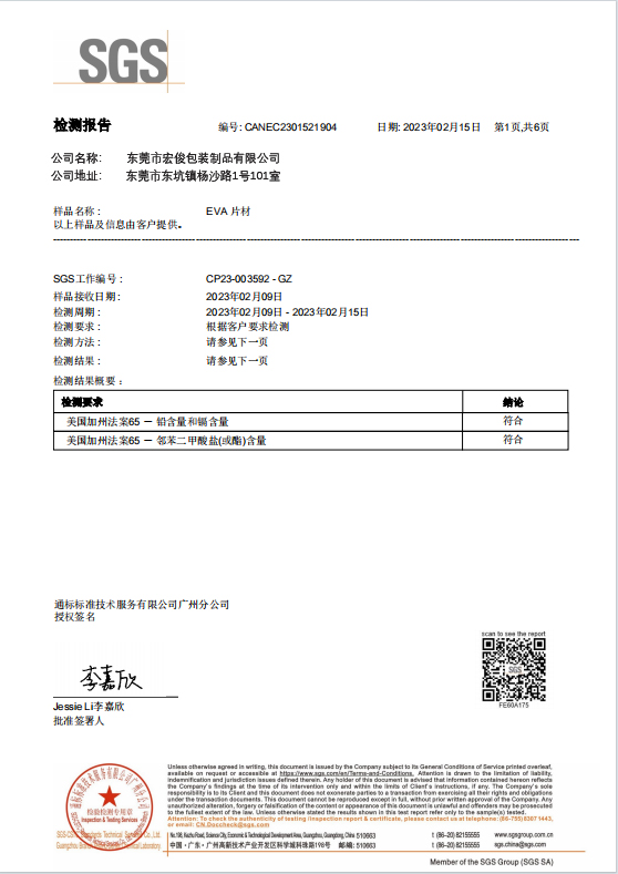 已通过SGS机构认证