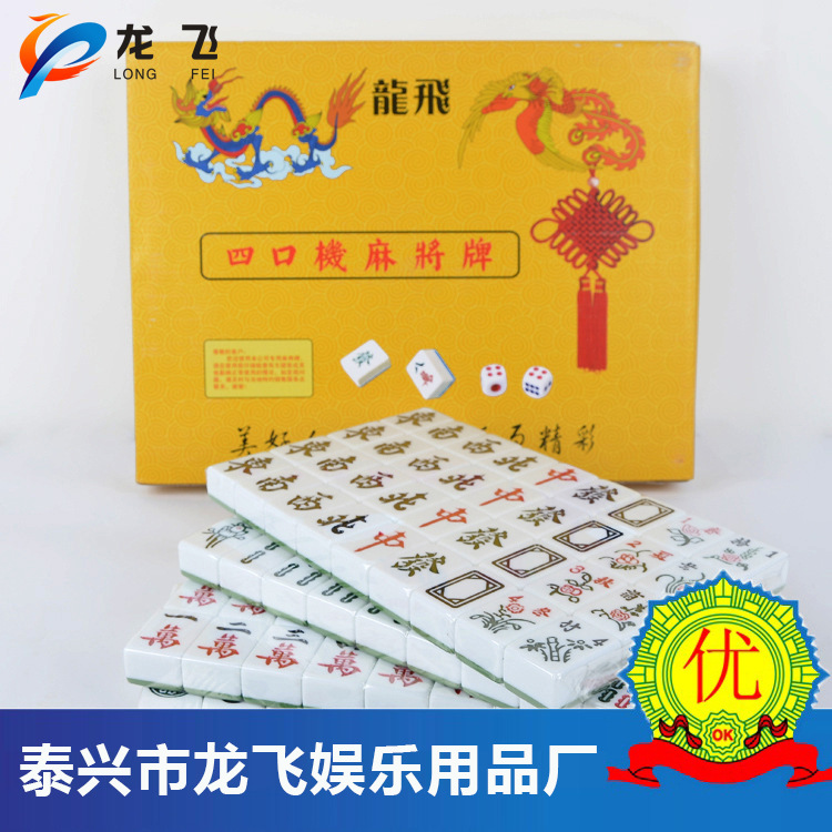 泰兴市龙飞娱乐用品厂是麻将等产品专业生产加工的公司,拥有完整、科学的质量管理体系。泰兴市龙飞娱乐用品厂的诚信、实力和产品质量获得业界的认可。欢迎各界朋友莅临参观、指导和业务洽谈。