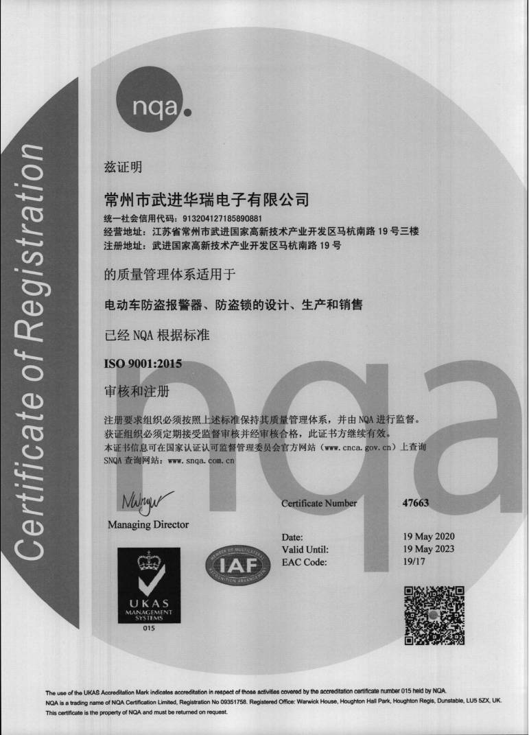 常州市武进华瑞电子有限公司创立于2000年, 公司从生产销售普通电动车摩托车防盗器起步,逐步发展成为以主营电动两轮车系列产品:电池盒、语音王、一键通、声光、感应、中支撑、GPS、电子锁、乐控等现代智能...