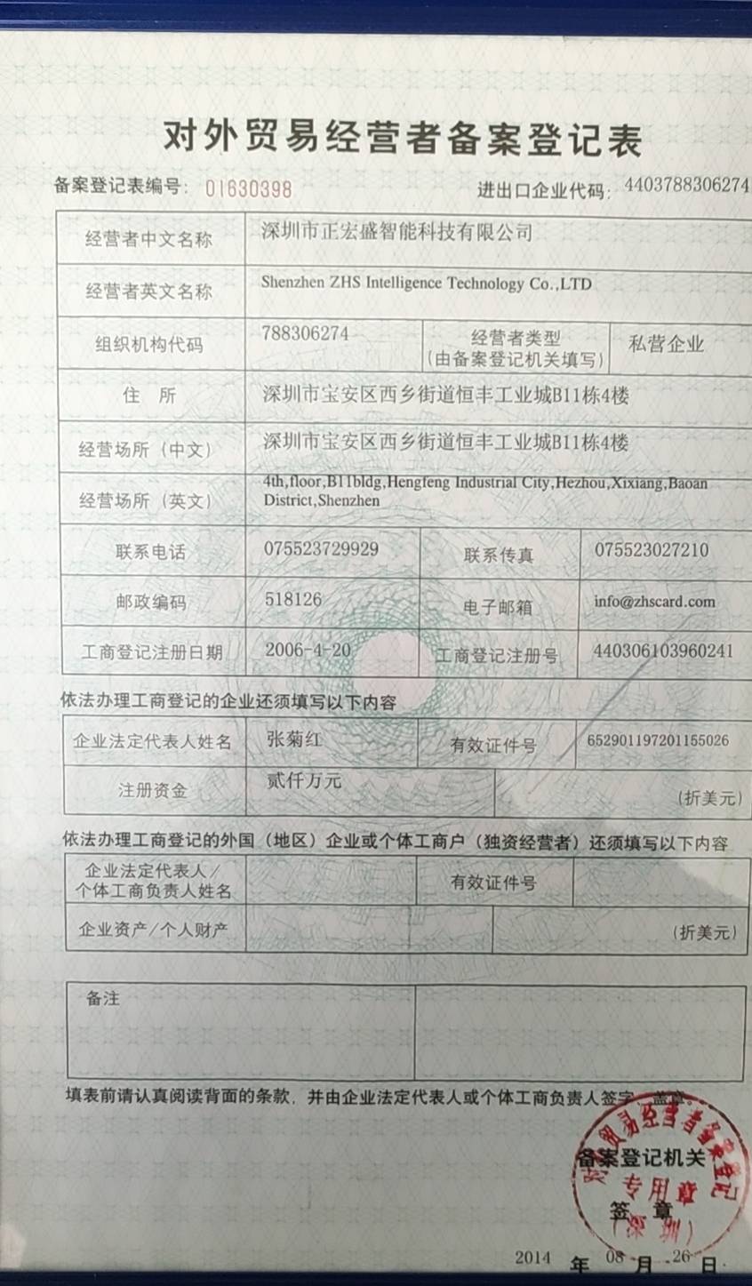 深圳市正宏盛智能科技有限公司,成立于2006,位于美丽的海滨城市,—深圳,是一家具有国际水平的智能卡制造商和解决方案提供商(智能标签,接触和非接触式智能卡,双界面卡及各种PVC卡)生产,个性化的应用。...