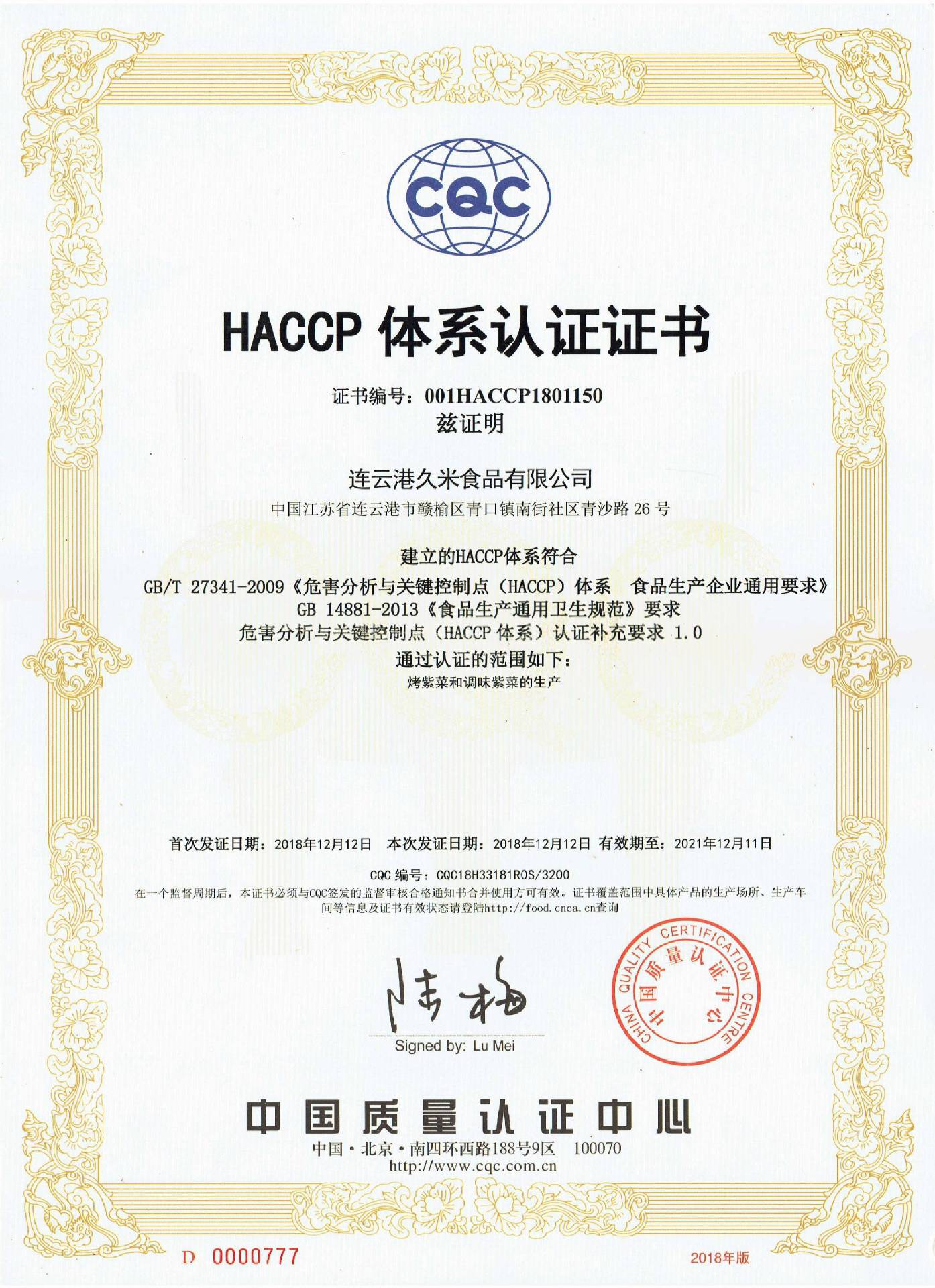 HACCP认证