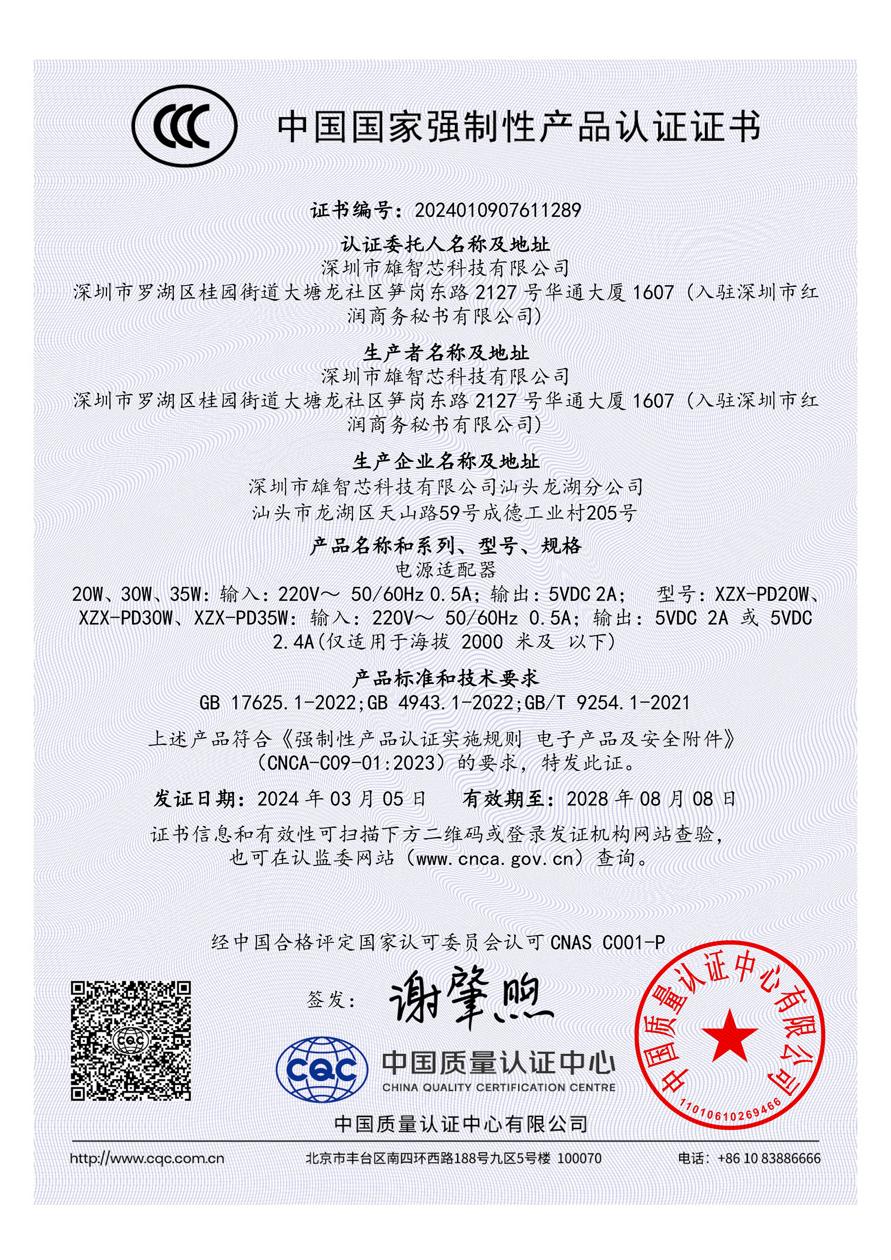 深圳市雄智芯科技有限公司是一家具有13年电源行业经验的高新技术企业。多年来,我们一直专注于电源适配器和充电器的研发和生产。现在我们拥有4000多平方米的现代化厂房,200多名生产人员,并引进了一批现代...