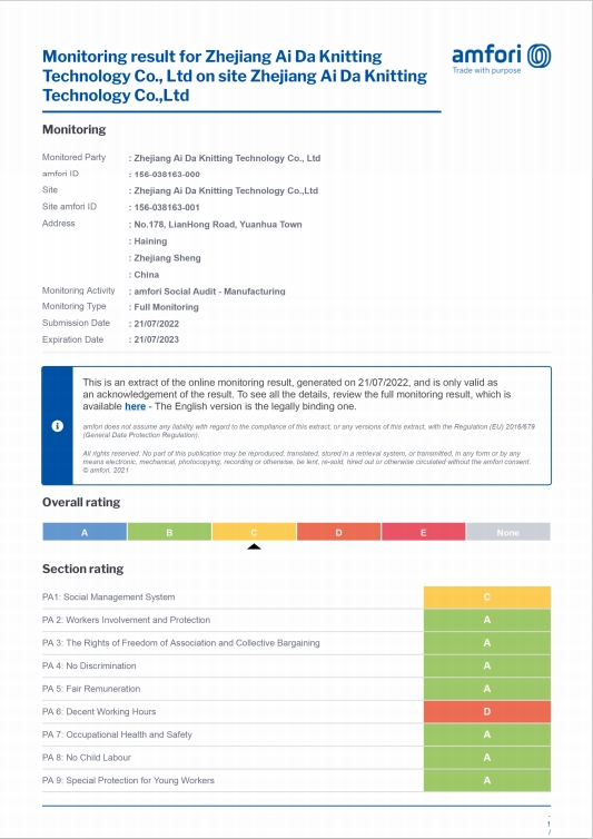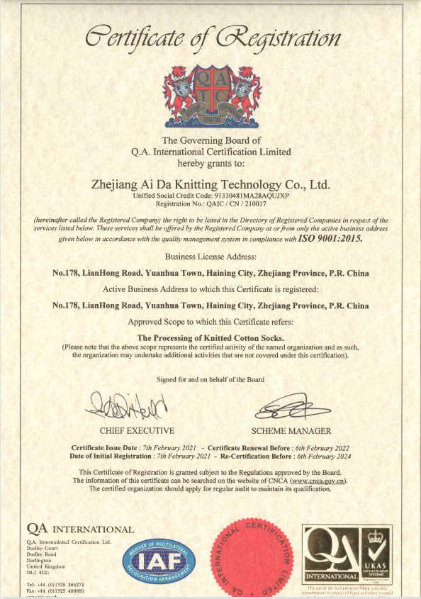 海宁品裳进出口有限公司是浙江艾达针织科技有限公司于2016年创建的外贸公司,艾达占地15022平方米 ,地处上海和杭州之间,有良好的区位优势,运输便捷,是一家内外贸结合的专业生产中高端男女运动袜、绅士...