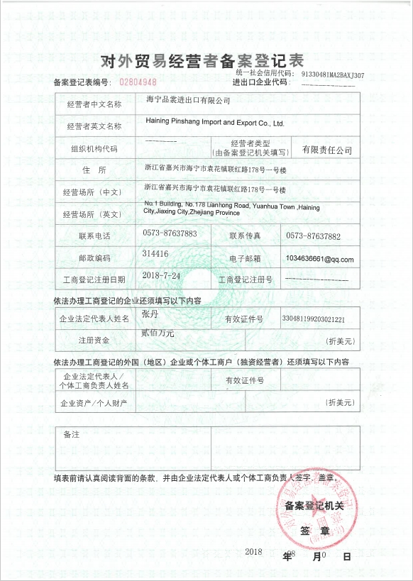 海宁品裳进出口有限公司