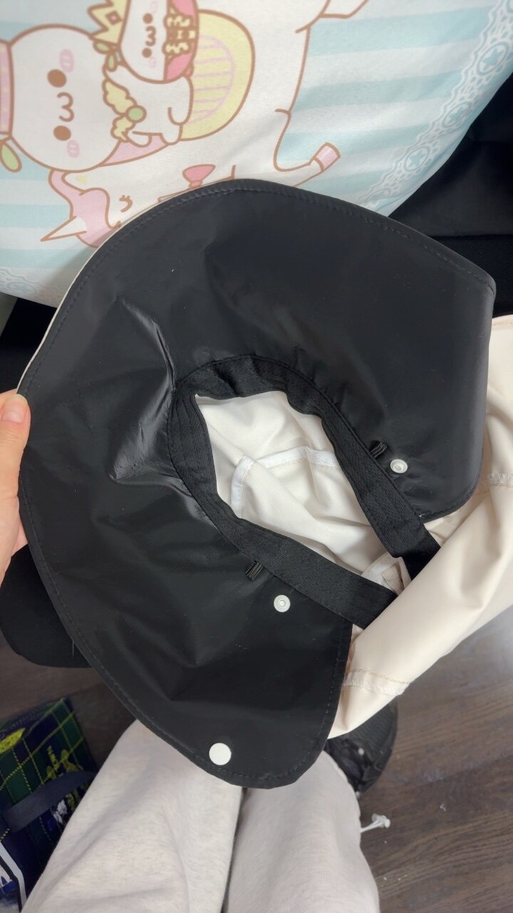 价格便宜凑合用,同款多多要22,28。优点:帽檐有型,挺硬挺。缺点:面罩有皮筋,不松弛不舒服,料子不亲肤。下面评论说可以袭击改扣子位置,试了一下确实,不改位置容易把面罩顶下来。所幸本来就没指望面罩。自己搭配个冰丝防晒面罩即可2026.3.16