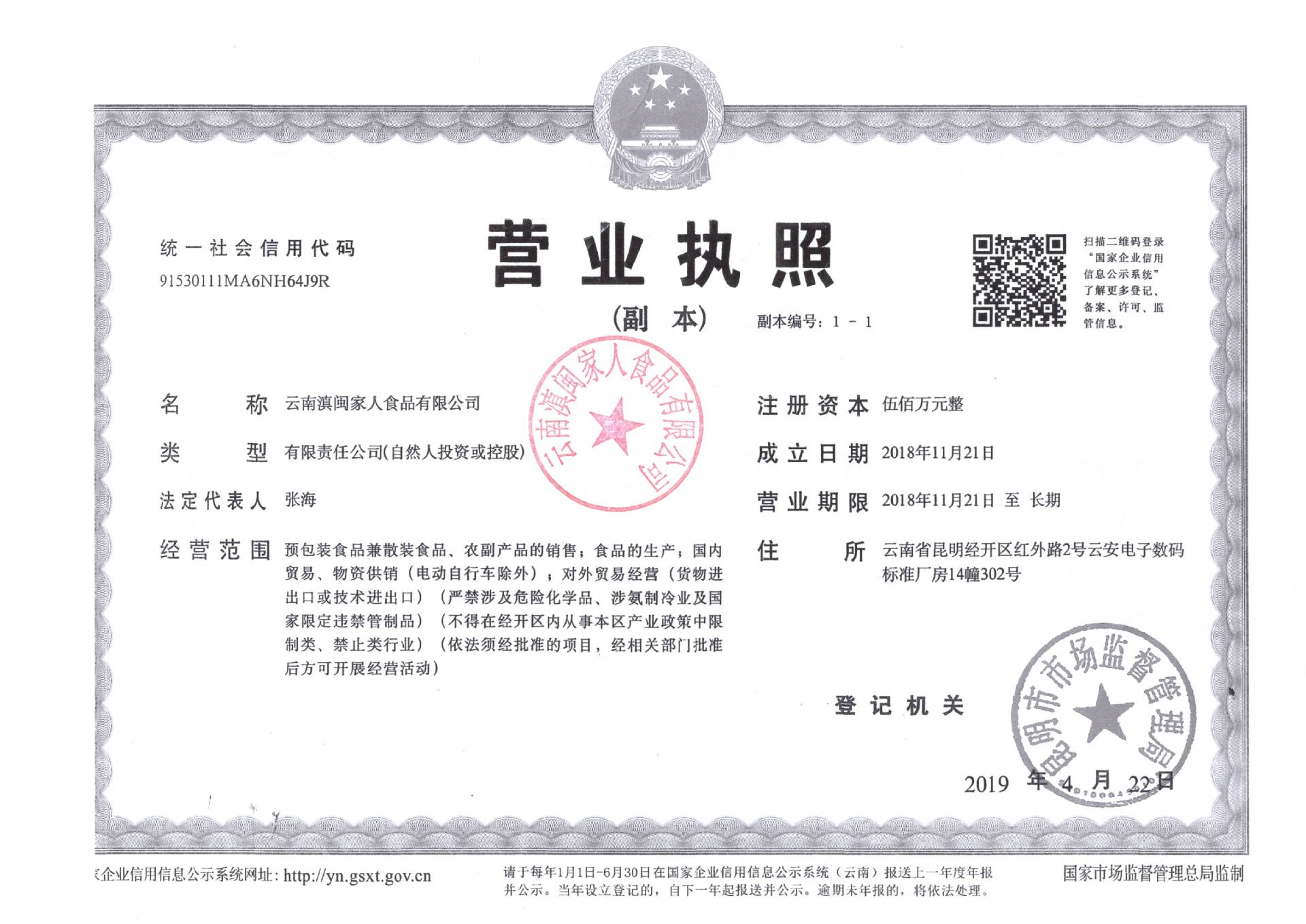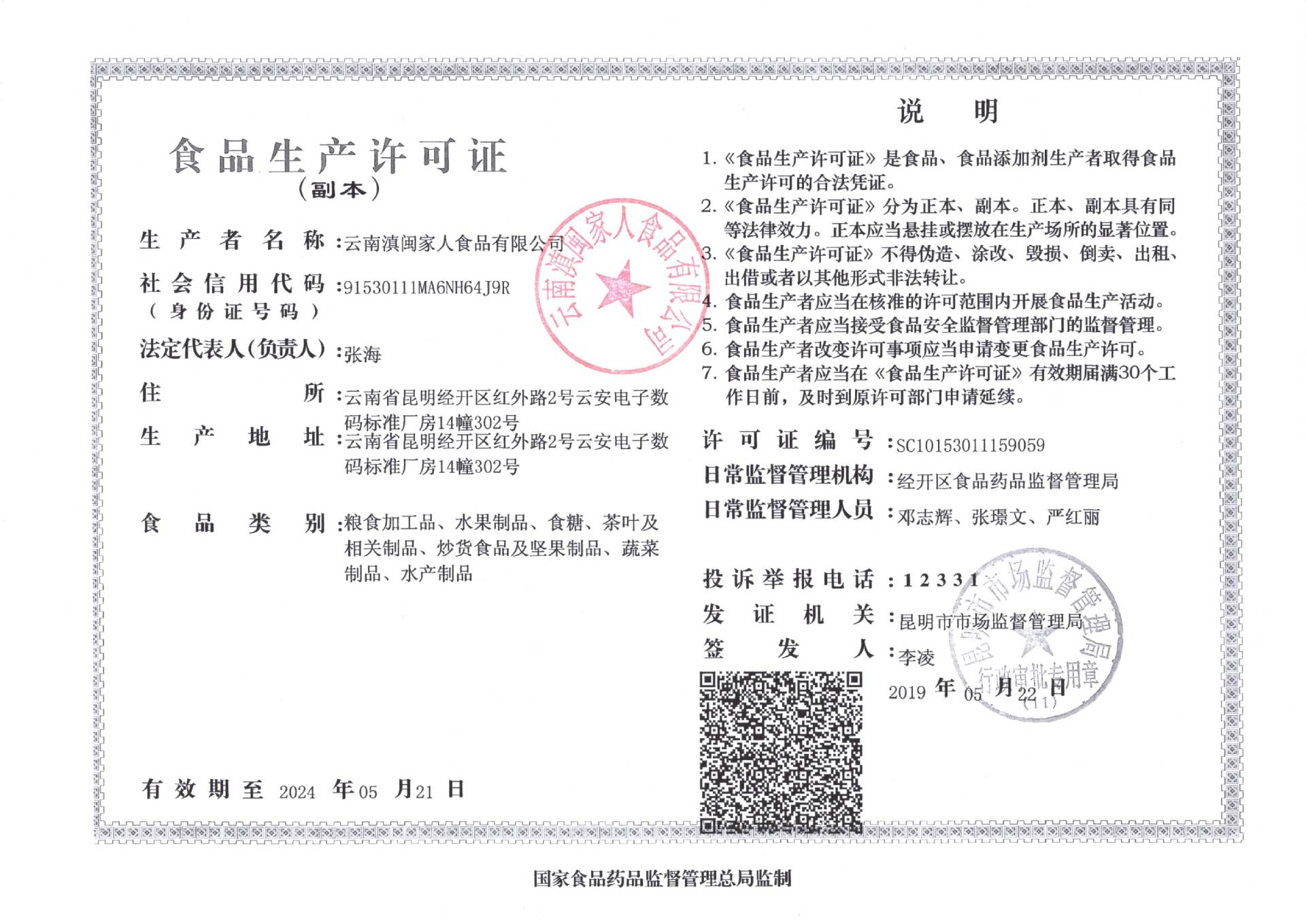 云南滇闽家人食品有限公司