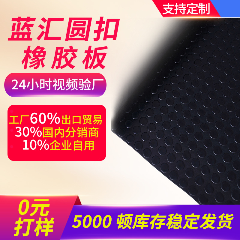 河北蓝汇橡胶科技有限公司是橡胶板,橡胶地板,橡胶垫的专业生产厂家和出口商。我们的主要产品有耐磨橡胶板,纯胶橡胶板,NR-SBR橡胶板,食品级橡胶板,氟橡胶板等工业橡胶板,还有圆扣板,柳叶纹板,细条纹板...