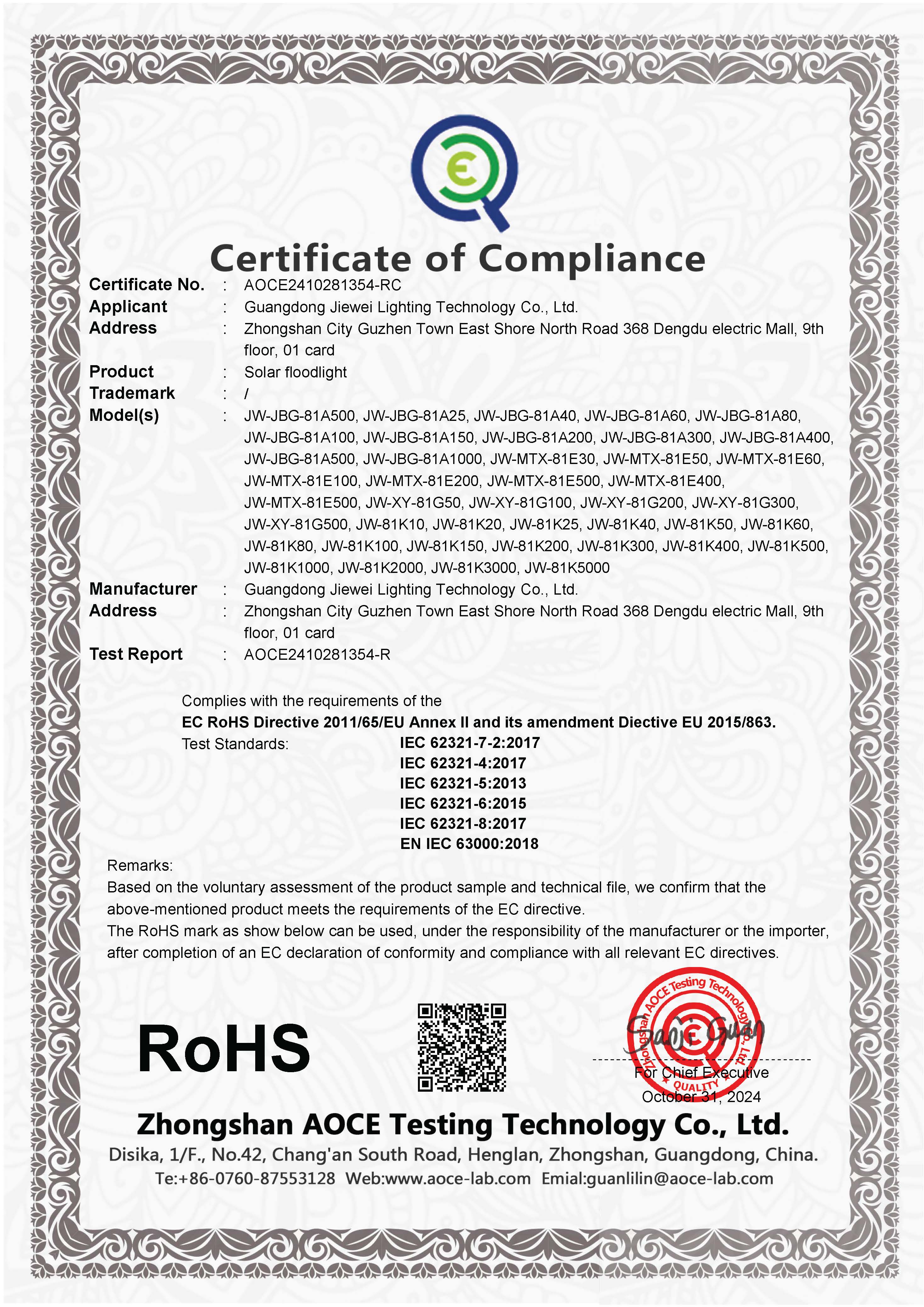 拥有RoHS认证