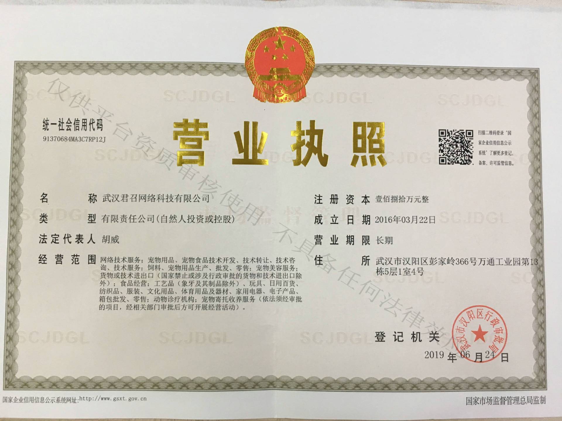 武汉君召网络科技有限公司专业从事宠物粮食、宠物零食、宠物用品、宠物玩具等宠物用品的生产和批发,同时代理“鲁芯鲜“、”莱克托尼“、”豪媤“等一些国内知名品牌和”麦富迪“、”麦德式“、”英国MAG“一些国...