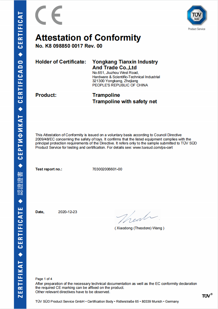 浙江天鑫运动器材有限公司是一家专注生产休闲健身运动器材的制造企业,其蹦床产业全国领先,尤其是小蹦床,更获得一致好评,是国际大型连锁超市、全球知名运动企业首选供应商。 天鑫始终关注员工需...