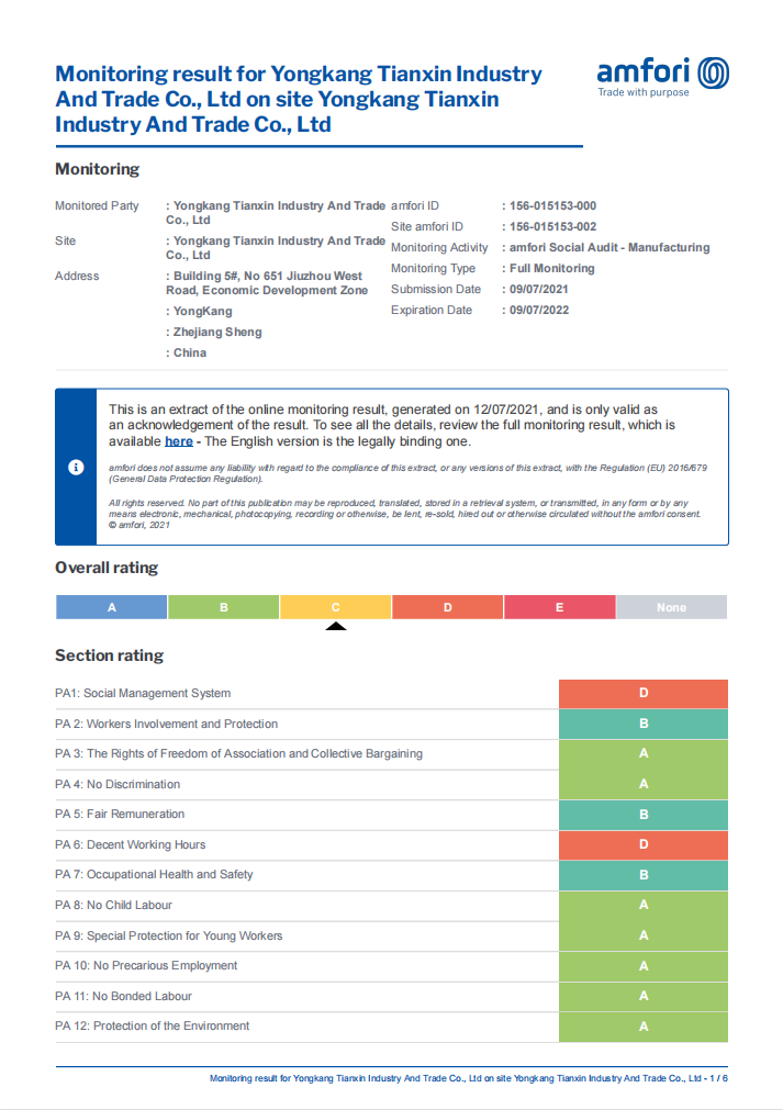 浙江天之鑫运动休闲器材有限公司
