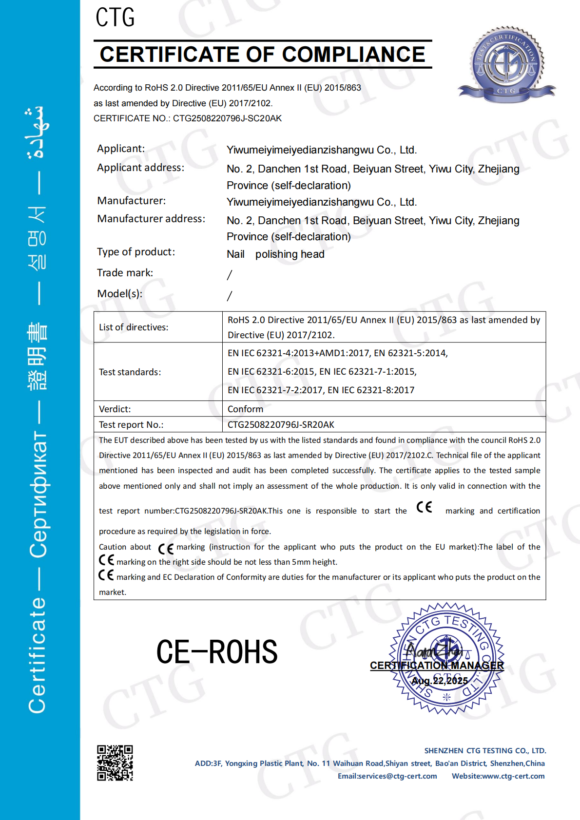 已通过INTERTEK机构认证
